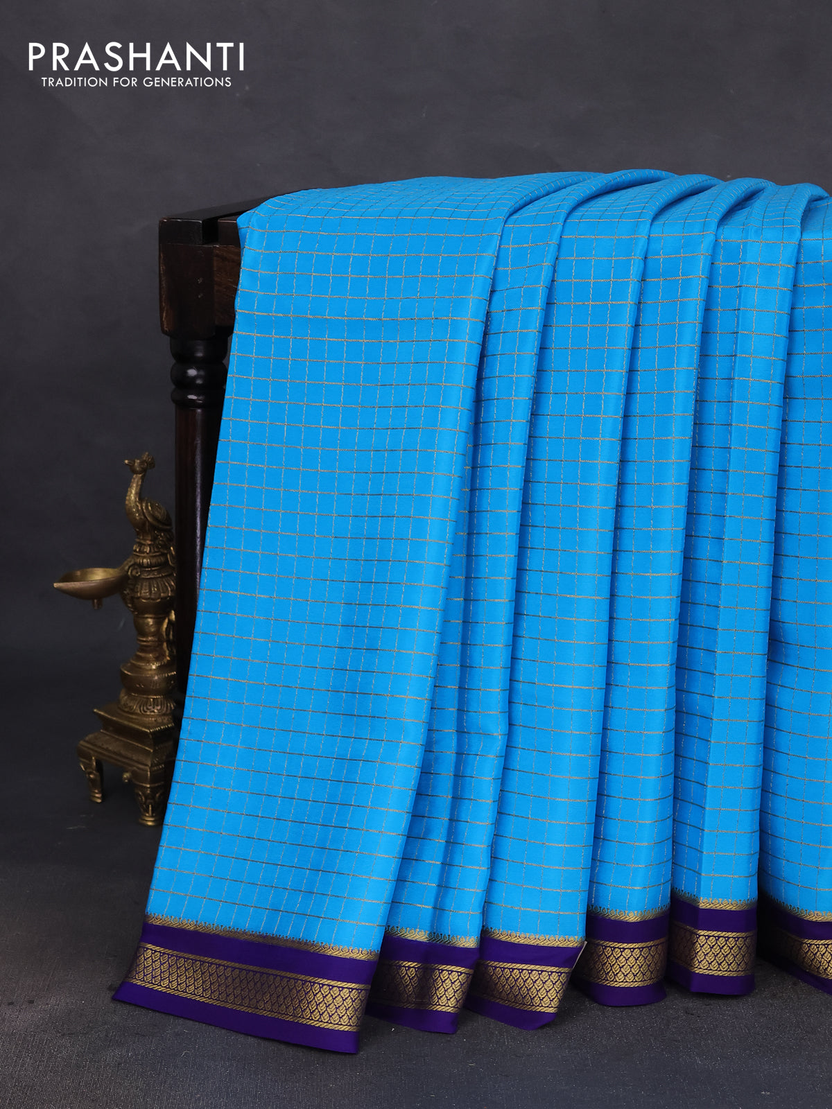 Pure mysore silk saree cs blue and blue with allover zari checked pattern and zari woven border