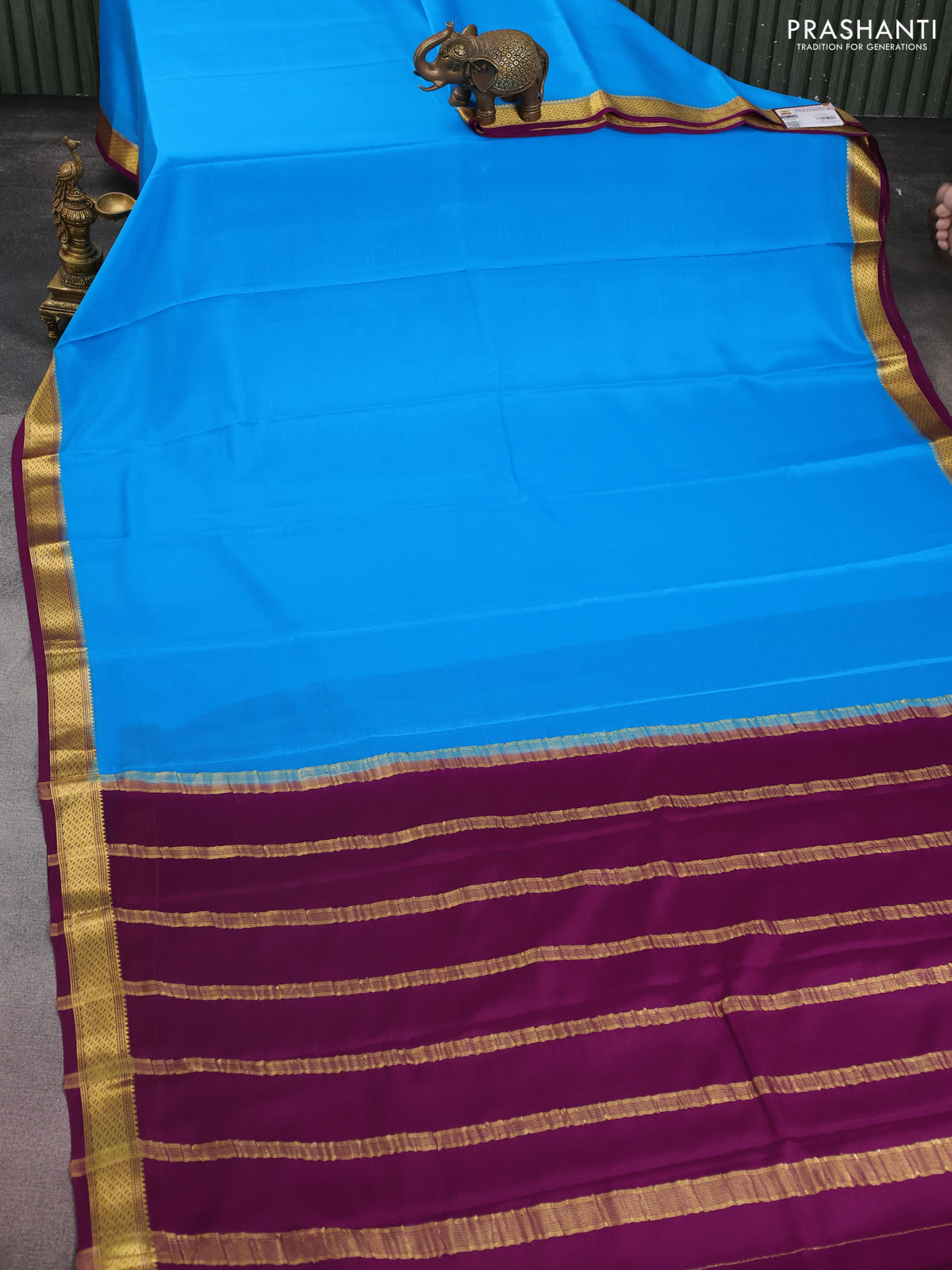 Pure mysore silk saree cs blue and purple with plain body and zari woven border