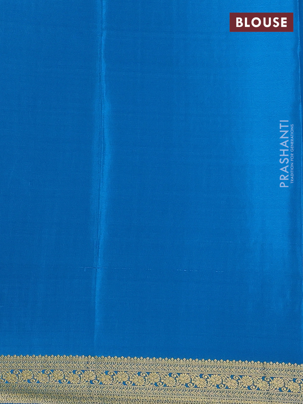 Pure mysore silk saree cs blue with allover zari checked pattern and zari woven border