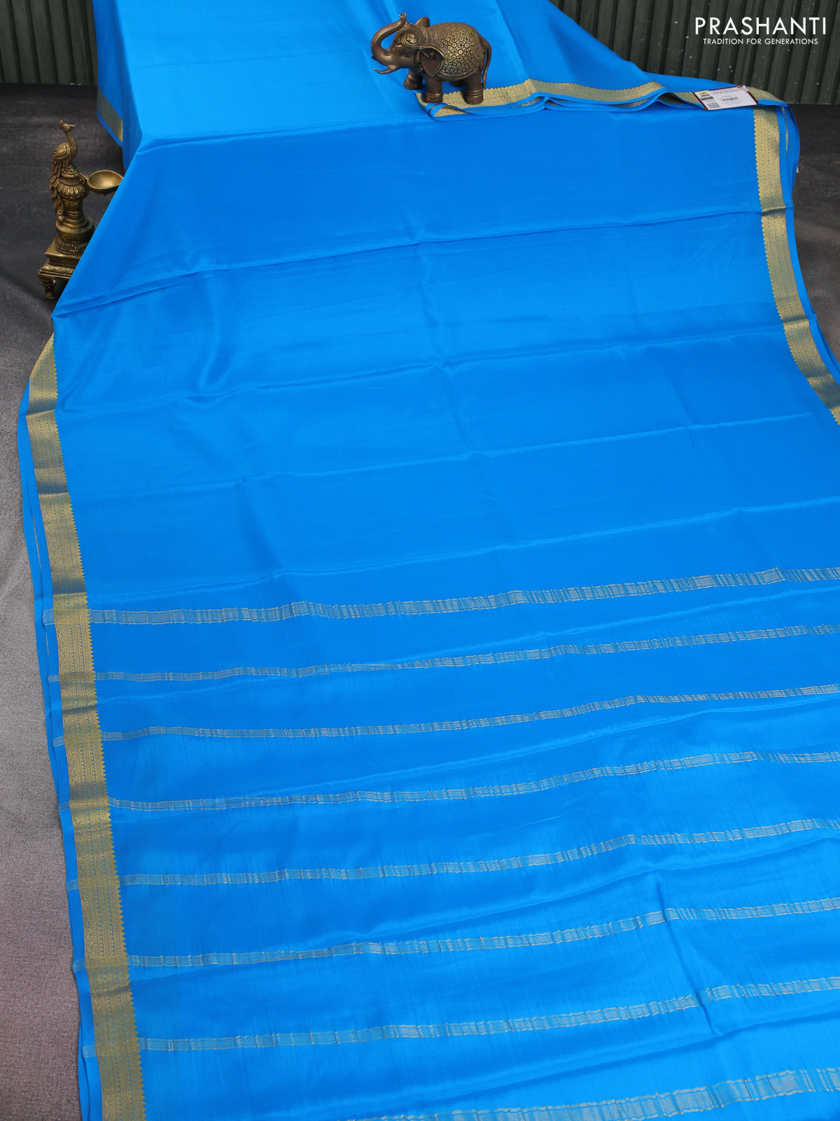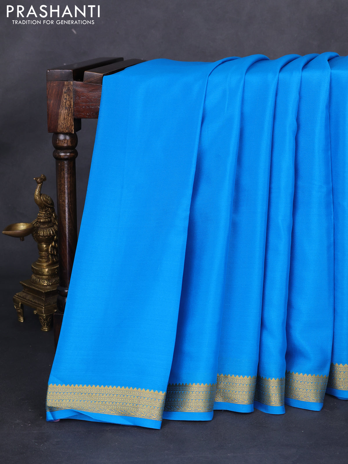 Pure mysore silk saree cs blue with plain body and zari woven border