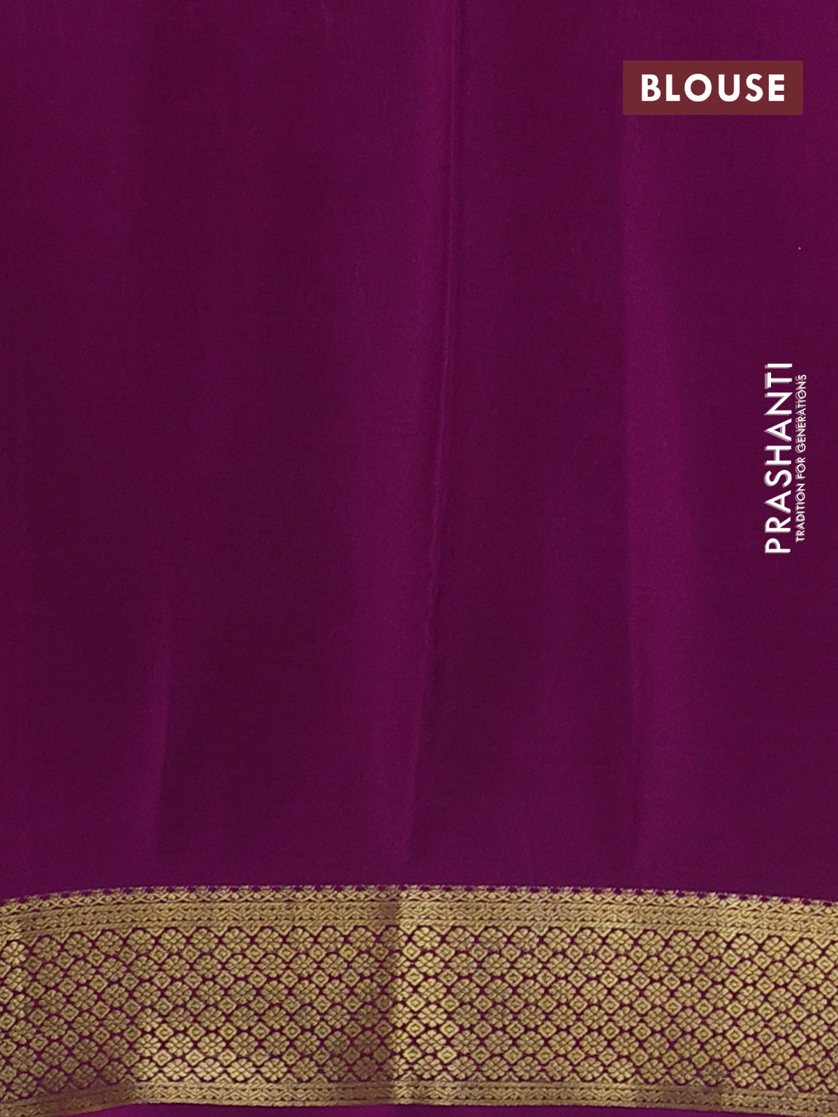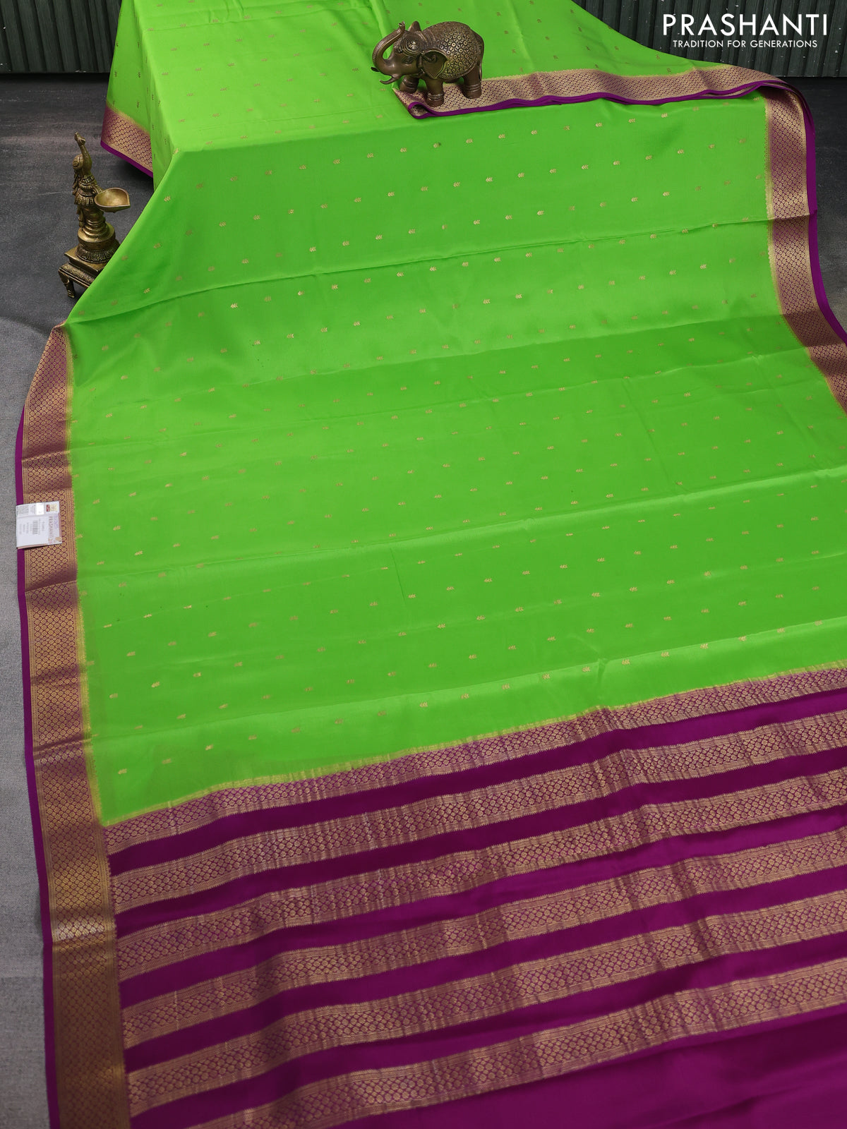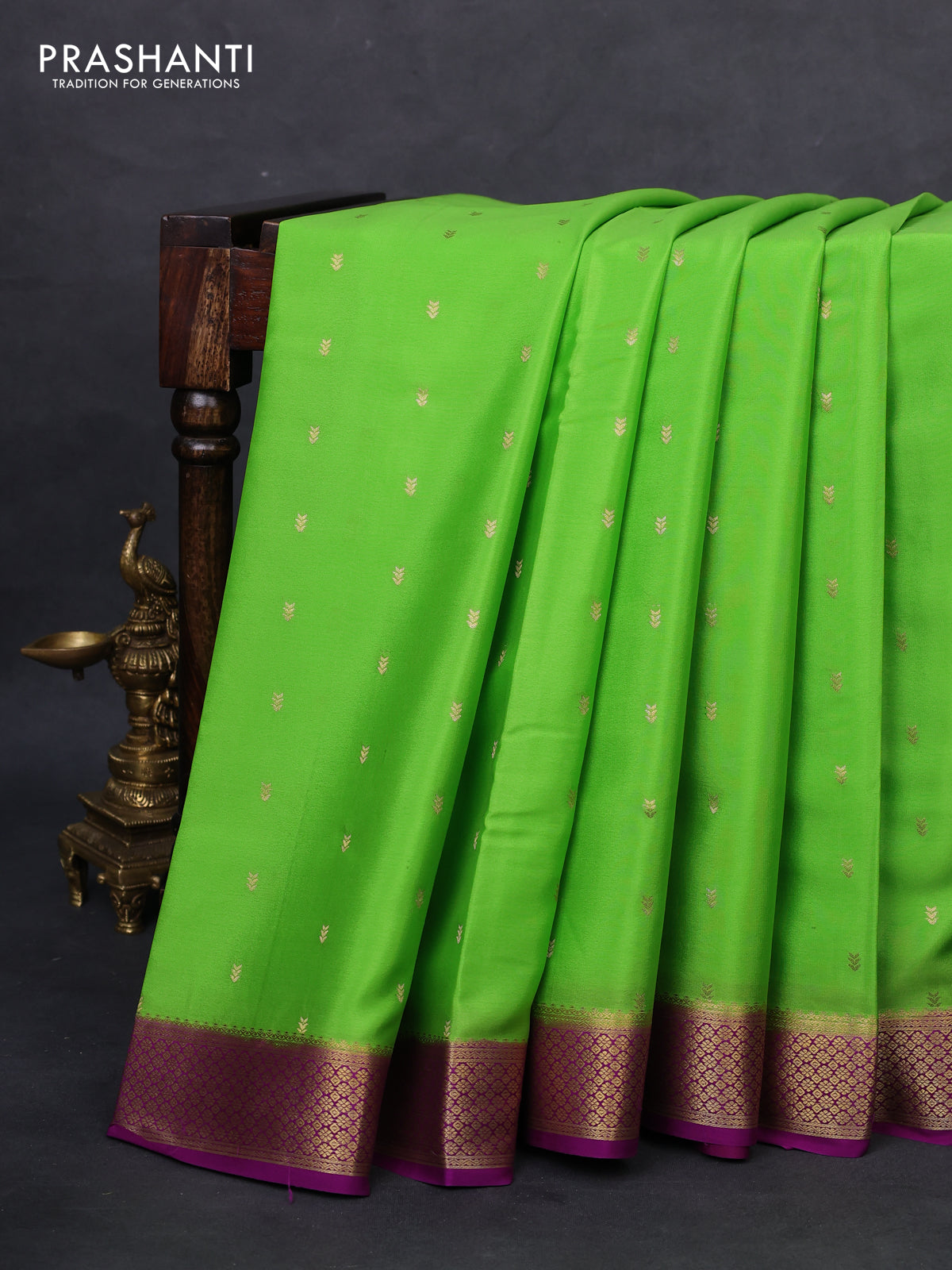Pure mysore silk saree fluorescent green and purple with zari woven buttas and zari woven border
