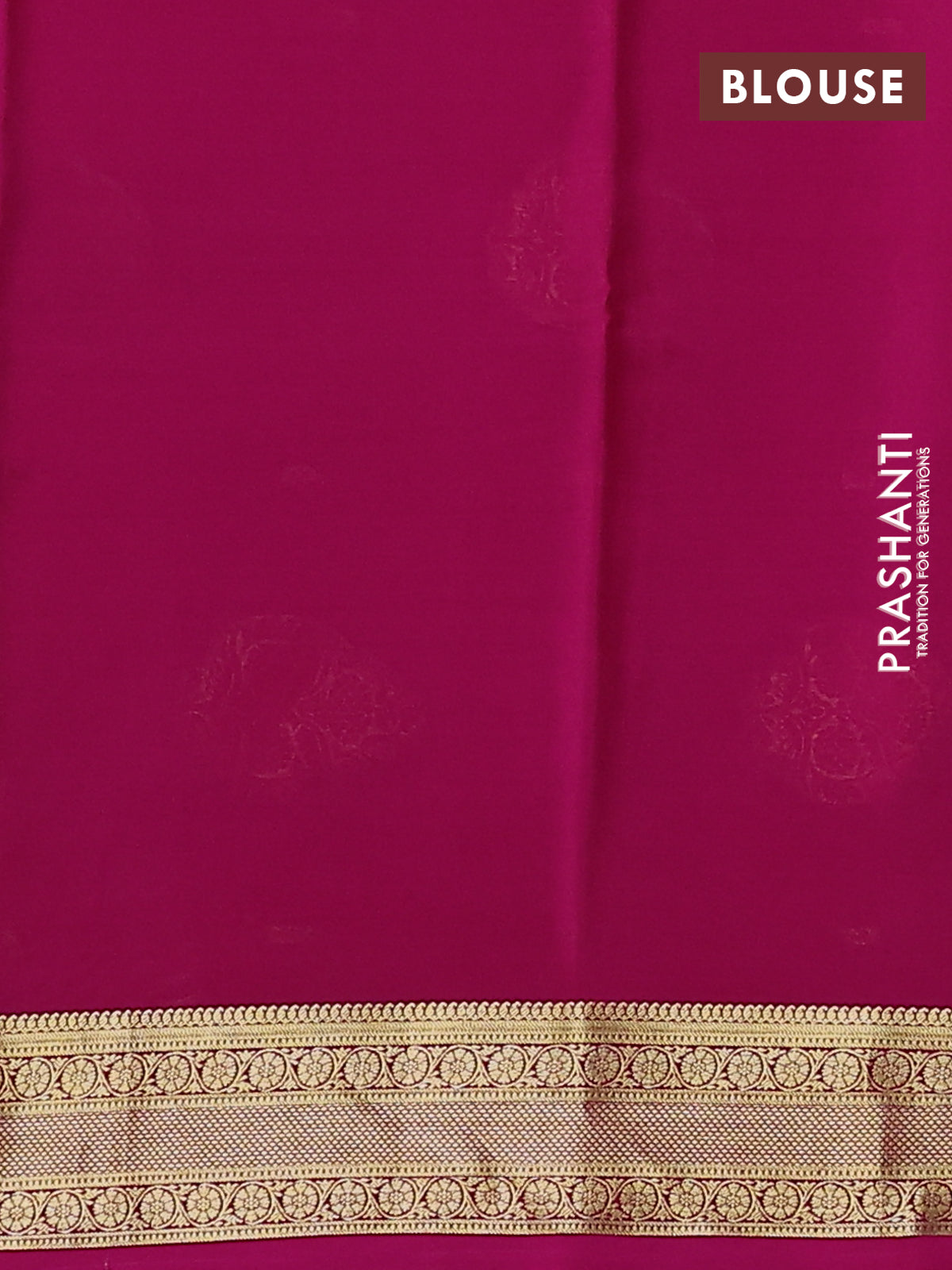 Pure mysore silk saree green and pink with plain body and zari woven border