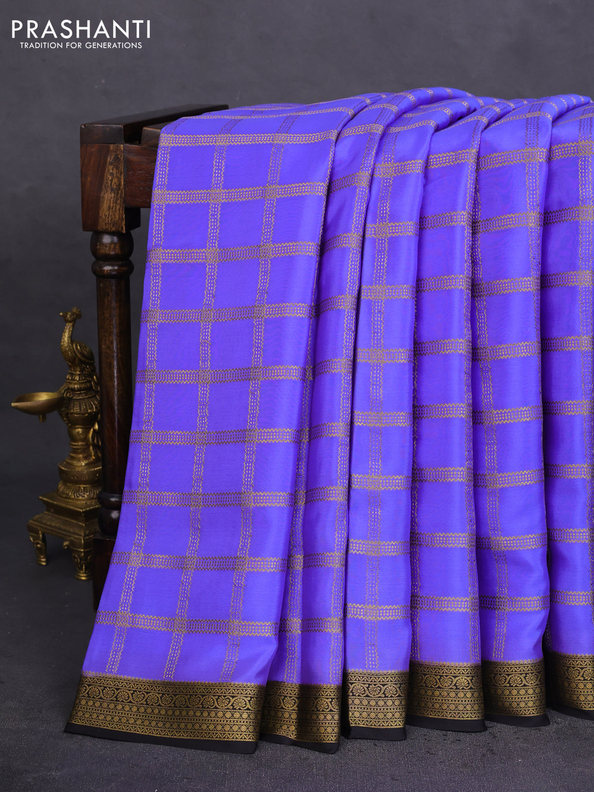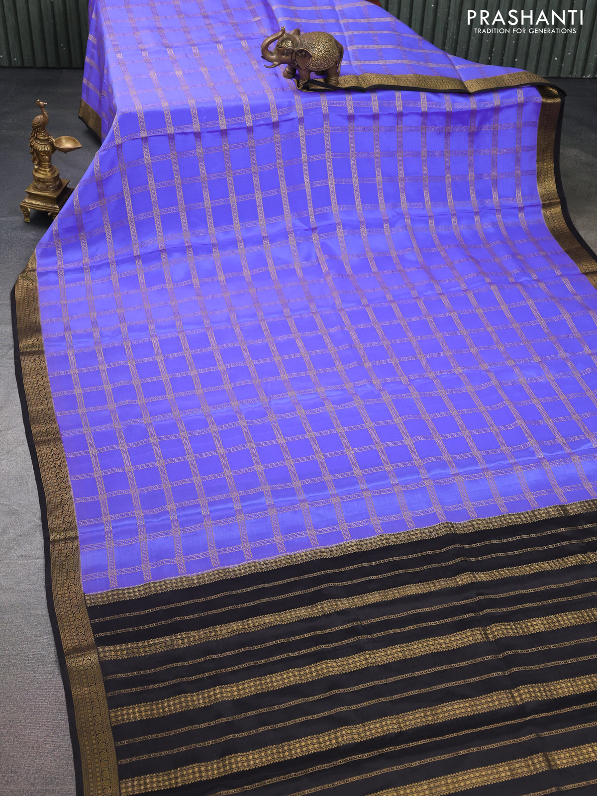 Pure mysore silk saree lavender and black with allover zari checked pattern and zari woven border