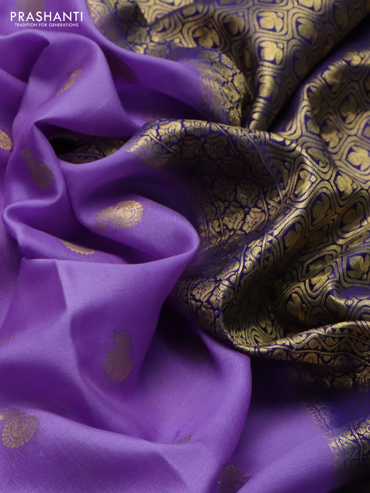 Pure mysore silk saree lavender and blue with allover zari woven buttas and zari woven border