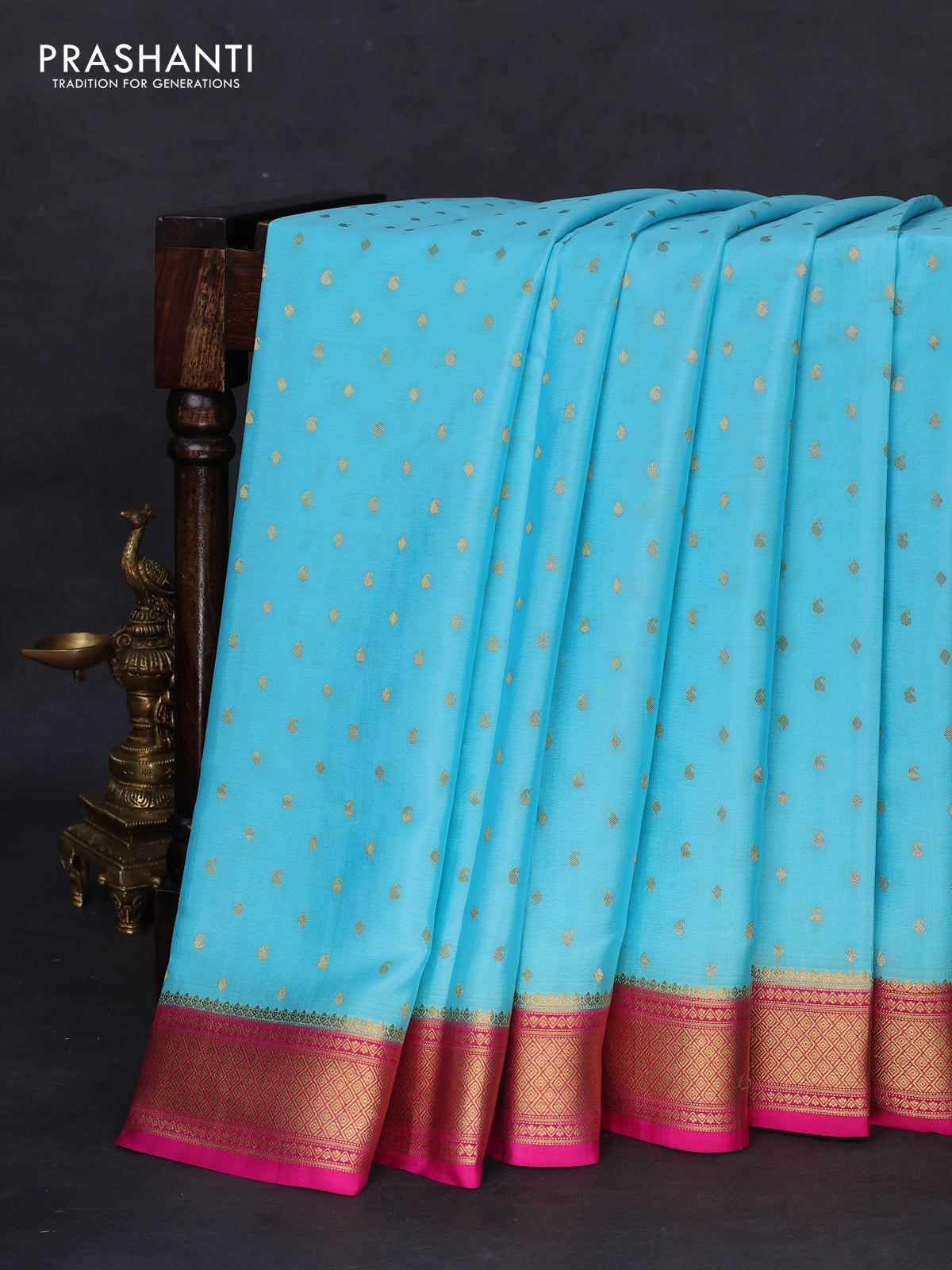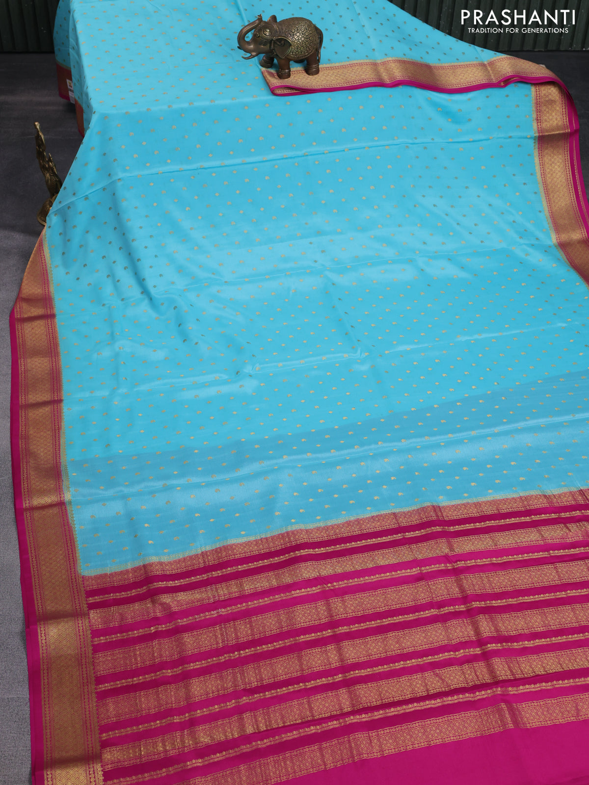 Pure mysore silk saree light blue and pink with allover zari woven buttas and zari woven border