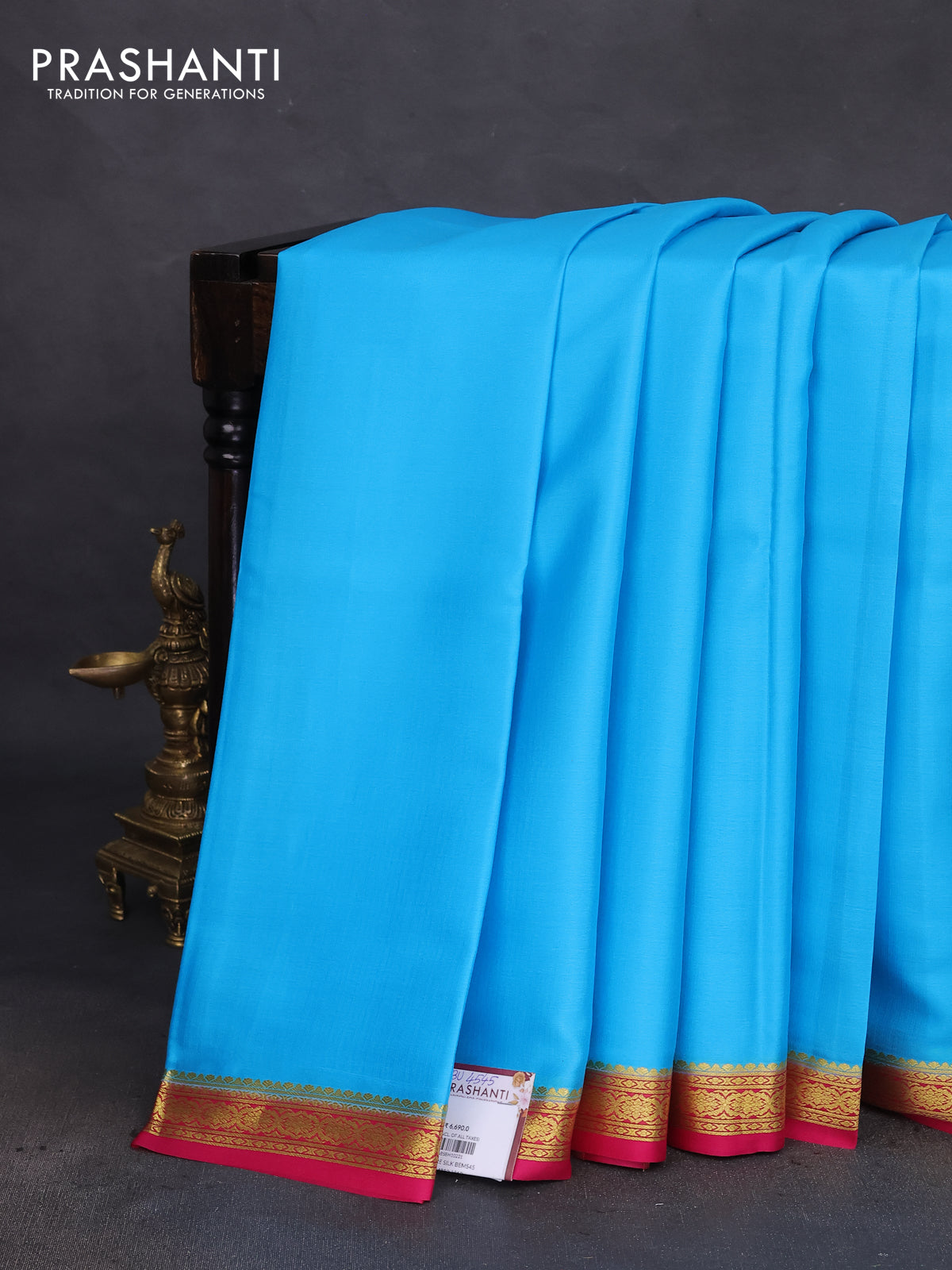 Pure mysore silk saree light blue and pink with plain body and zari woven border