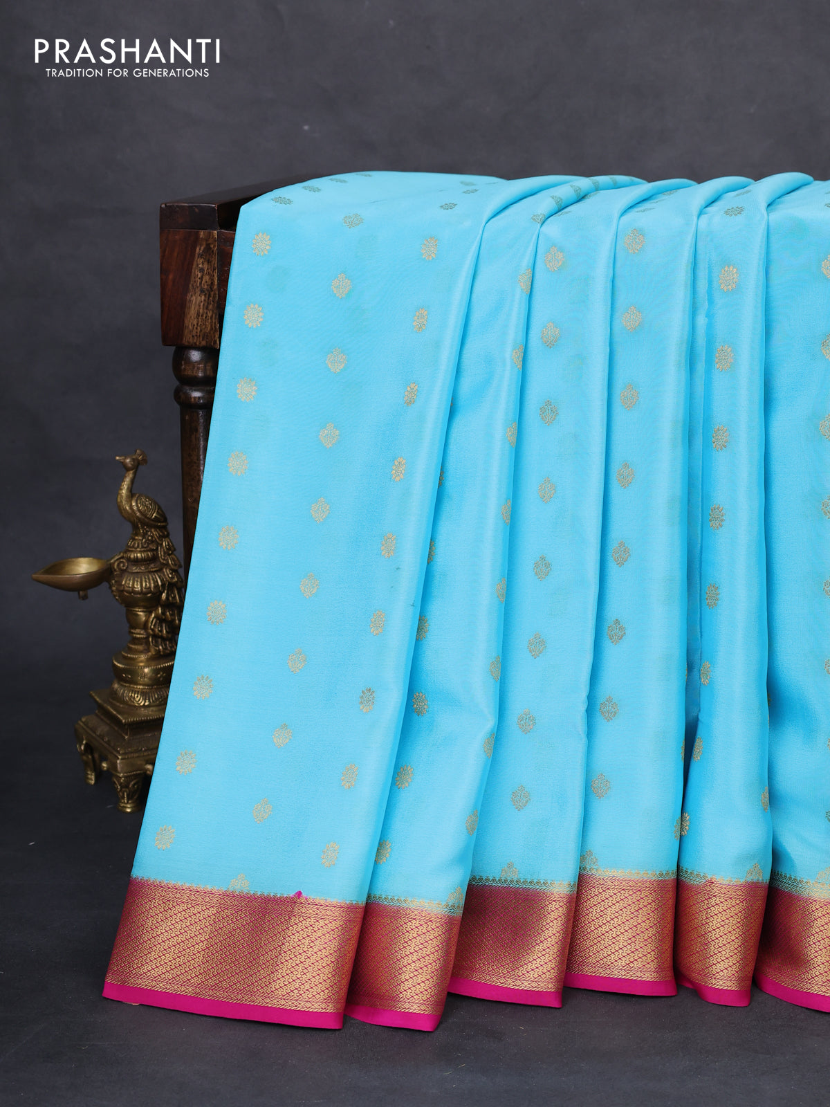 Pure mysore silk saree light blue and pink with zari woven buttas and zari woven border