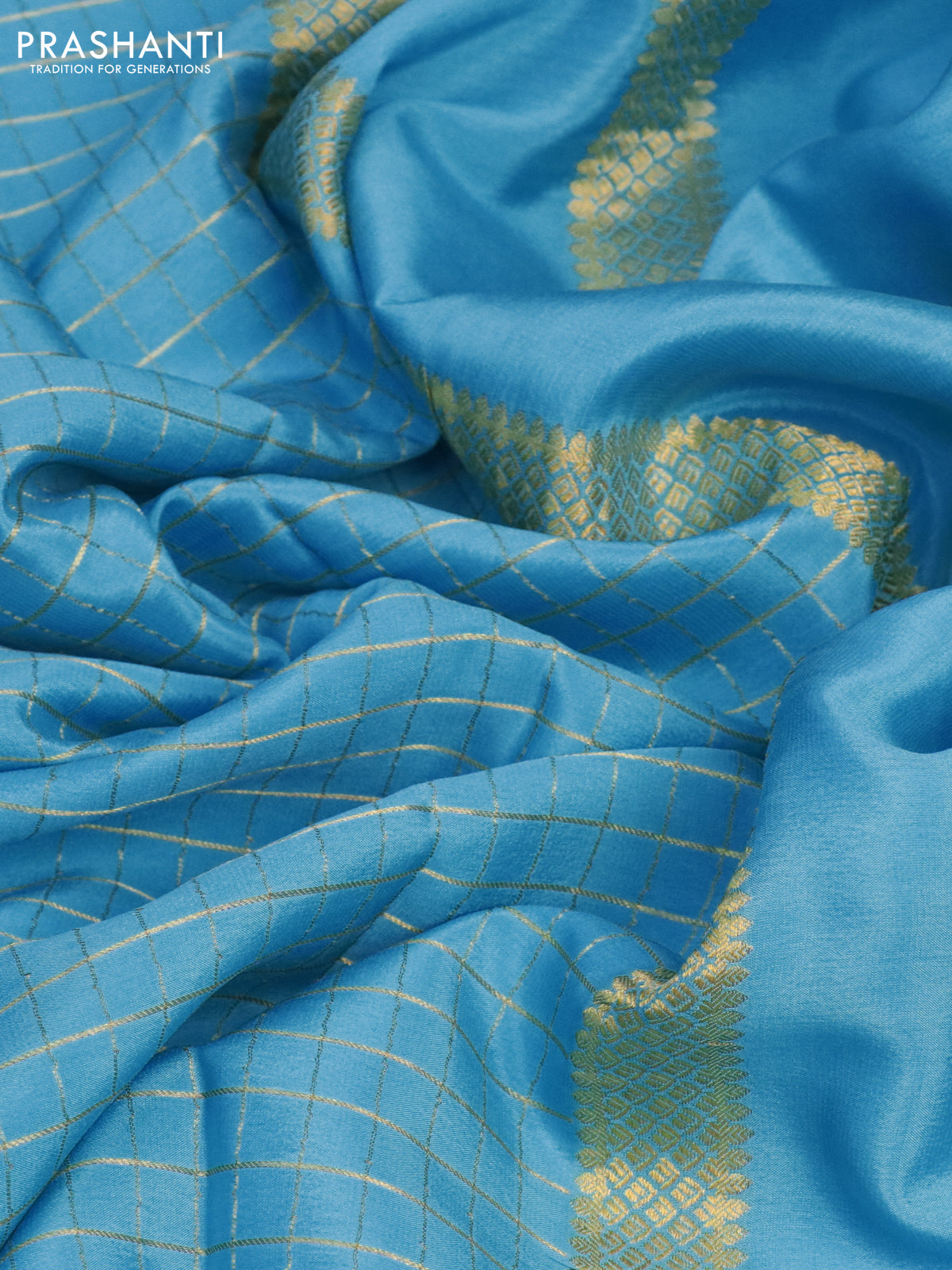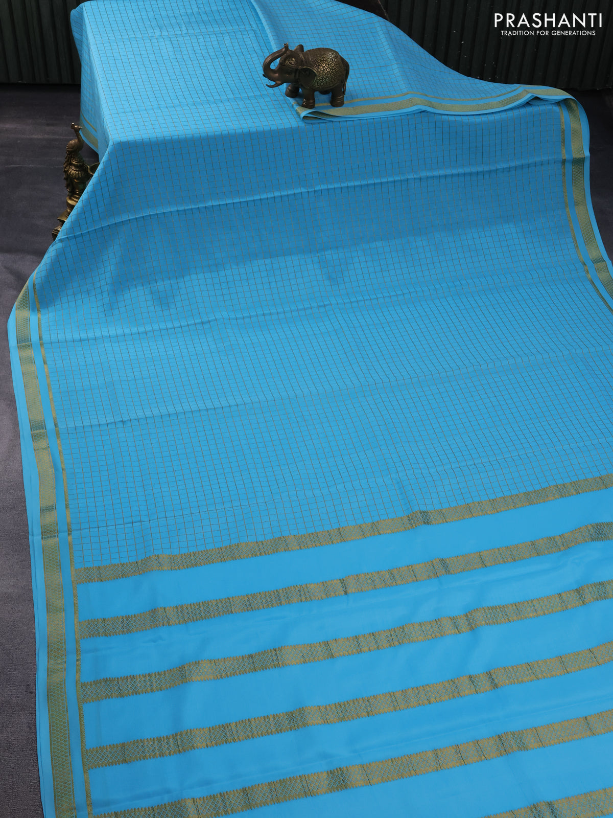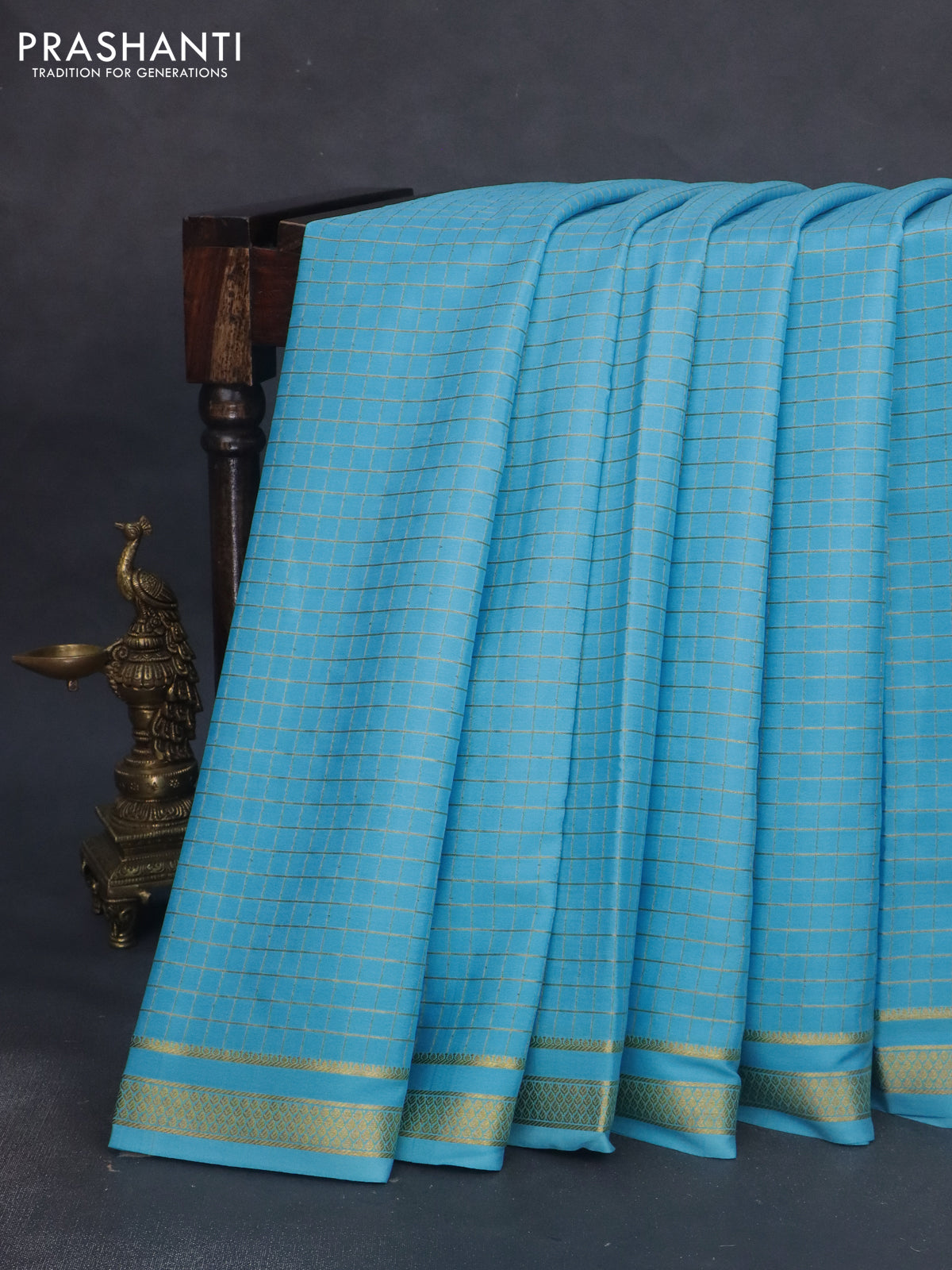 Pure mysore silk saree light blue with allover zari checked pattern and zari woven border