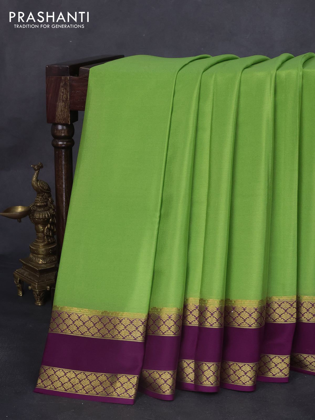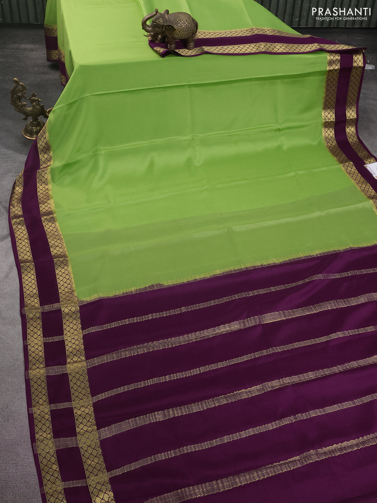 Pure mysore silk saree light green and wine shade with plain body and rettapet zari woven border