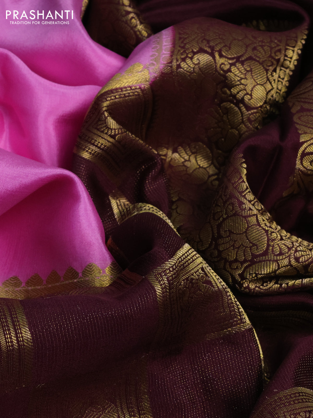 Pure mysore silk saree light pink and deep wine shade with half & half style and zari woven border