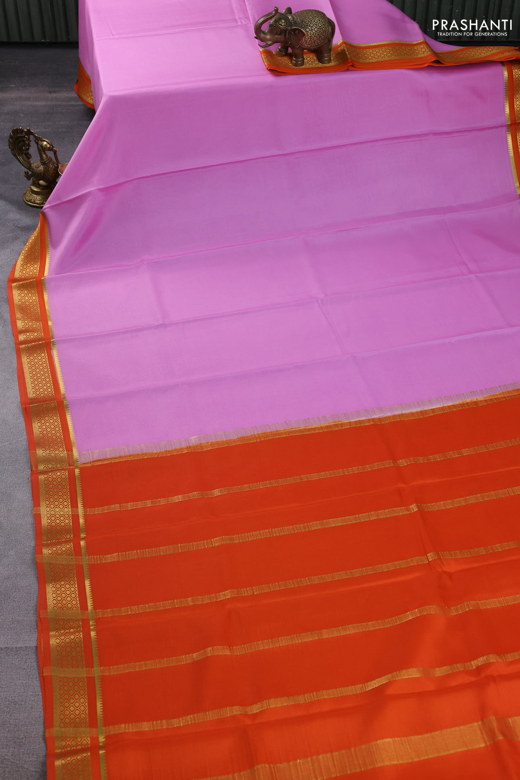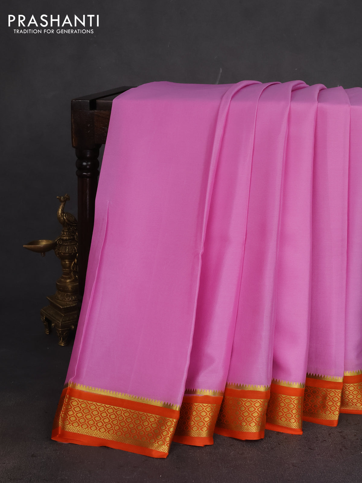 Pure mysore silk saree light pink and orange with plain body and zari woven border