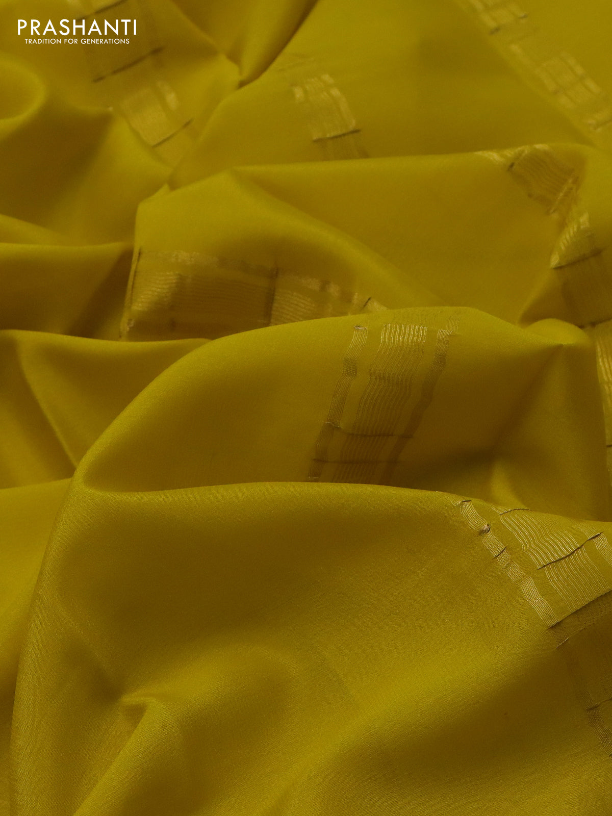 Pure mysore silk saree lime yellow with plain body and zari woven border