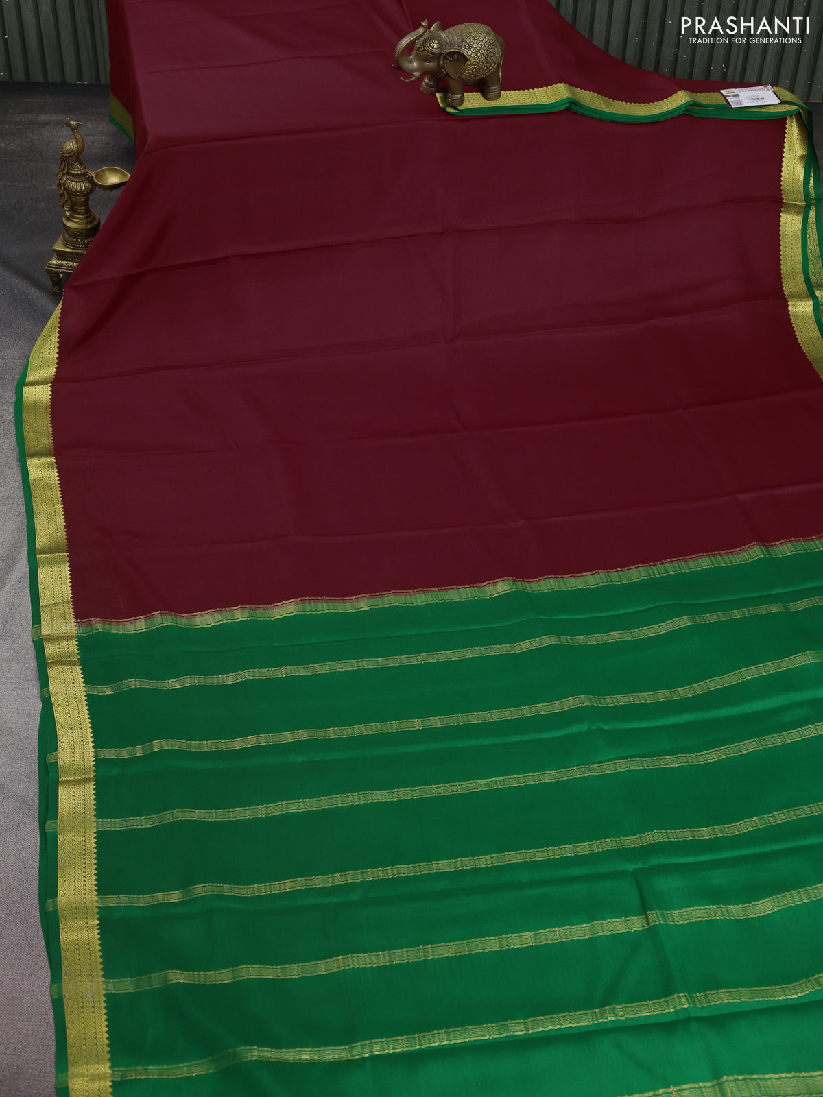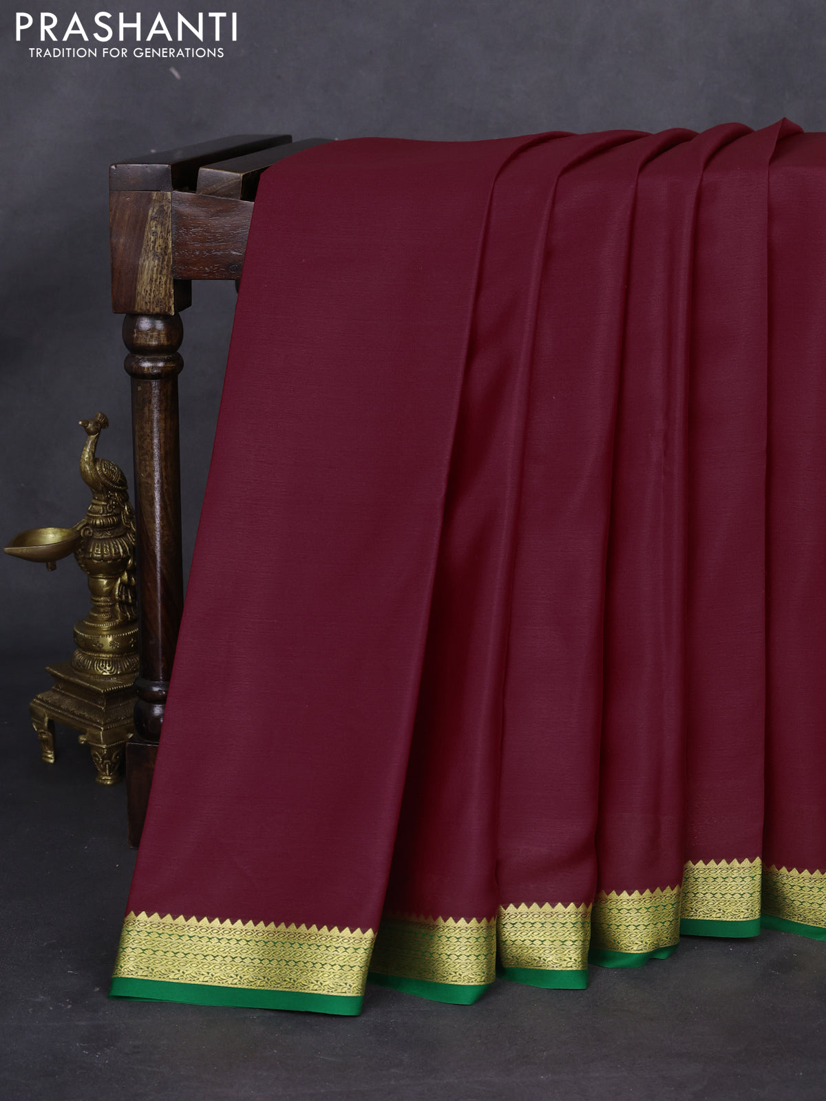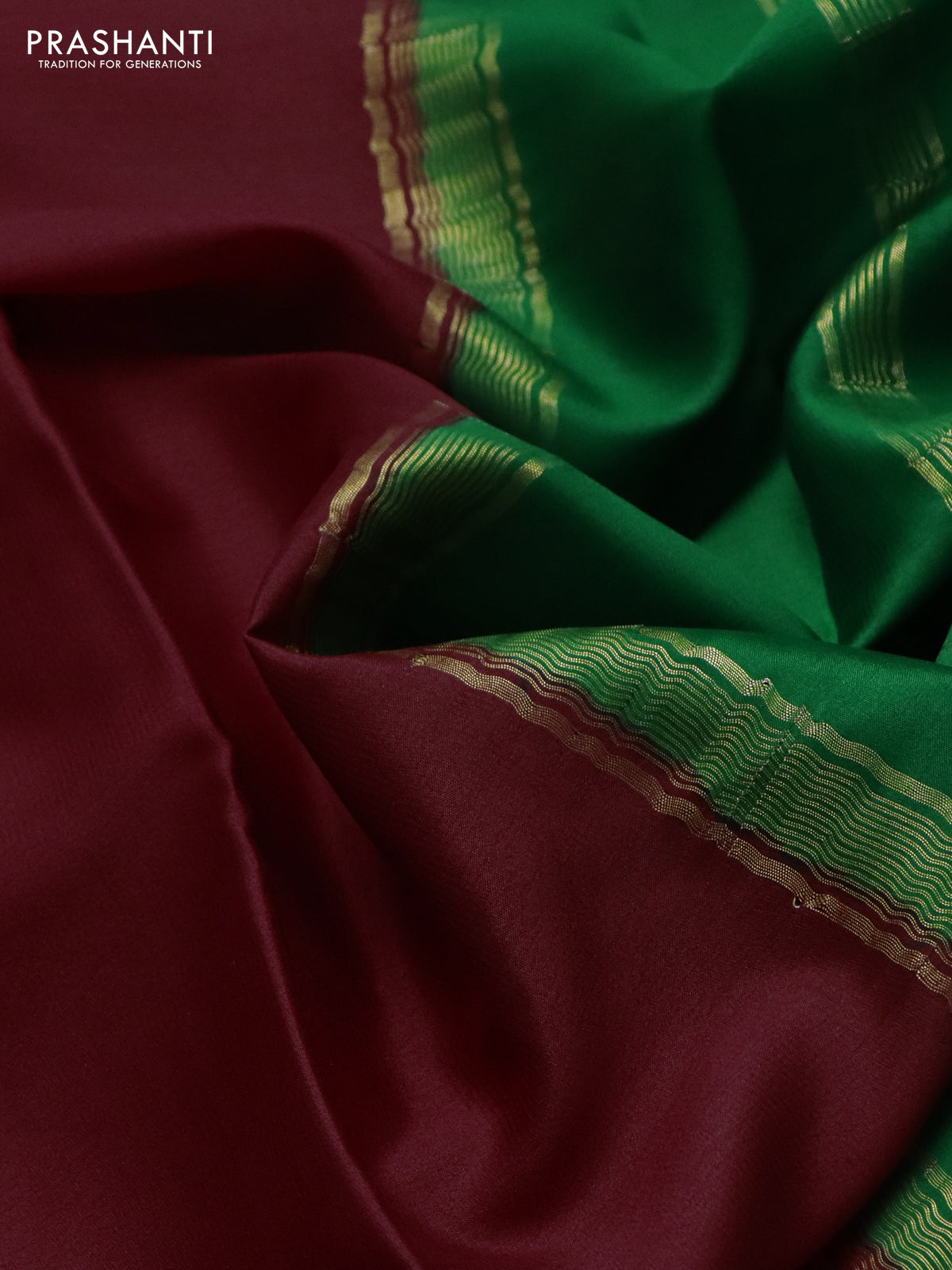 Pure mysore silk saree maroon and green with plain body and zari woven border