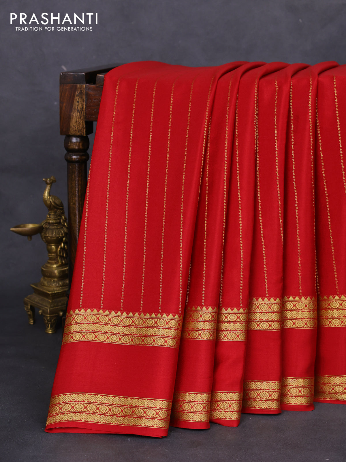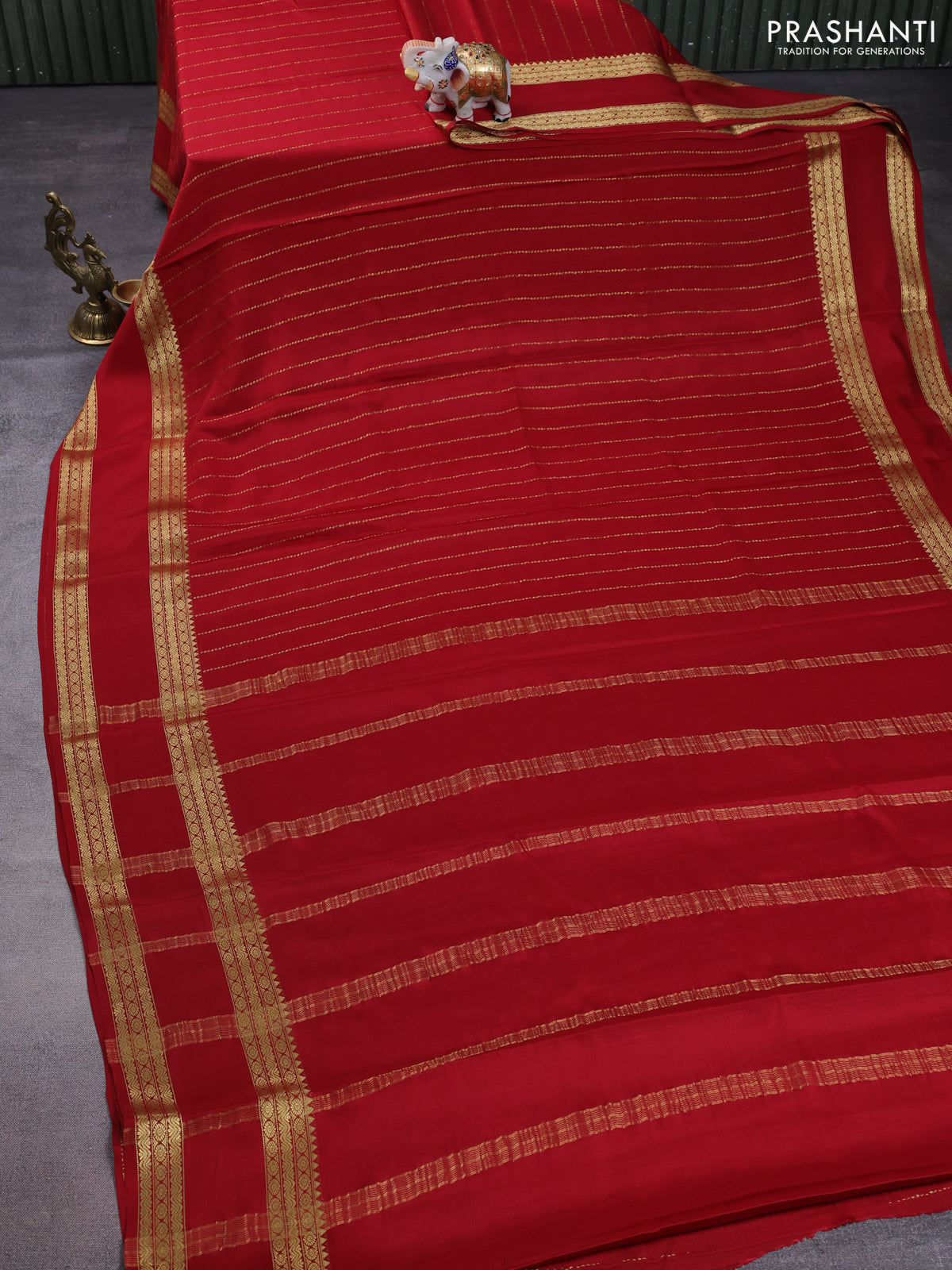 Pure mysore silk saree maroon with allover zari stripes pattern and rettapet zari woven border