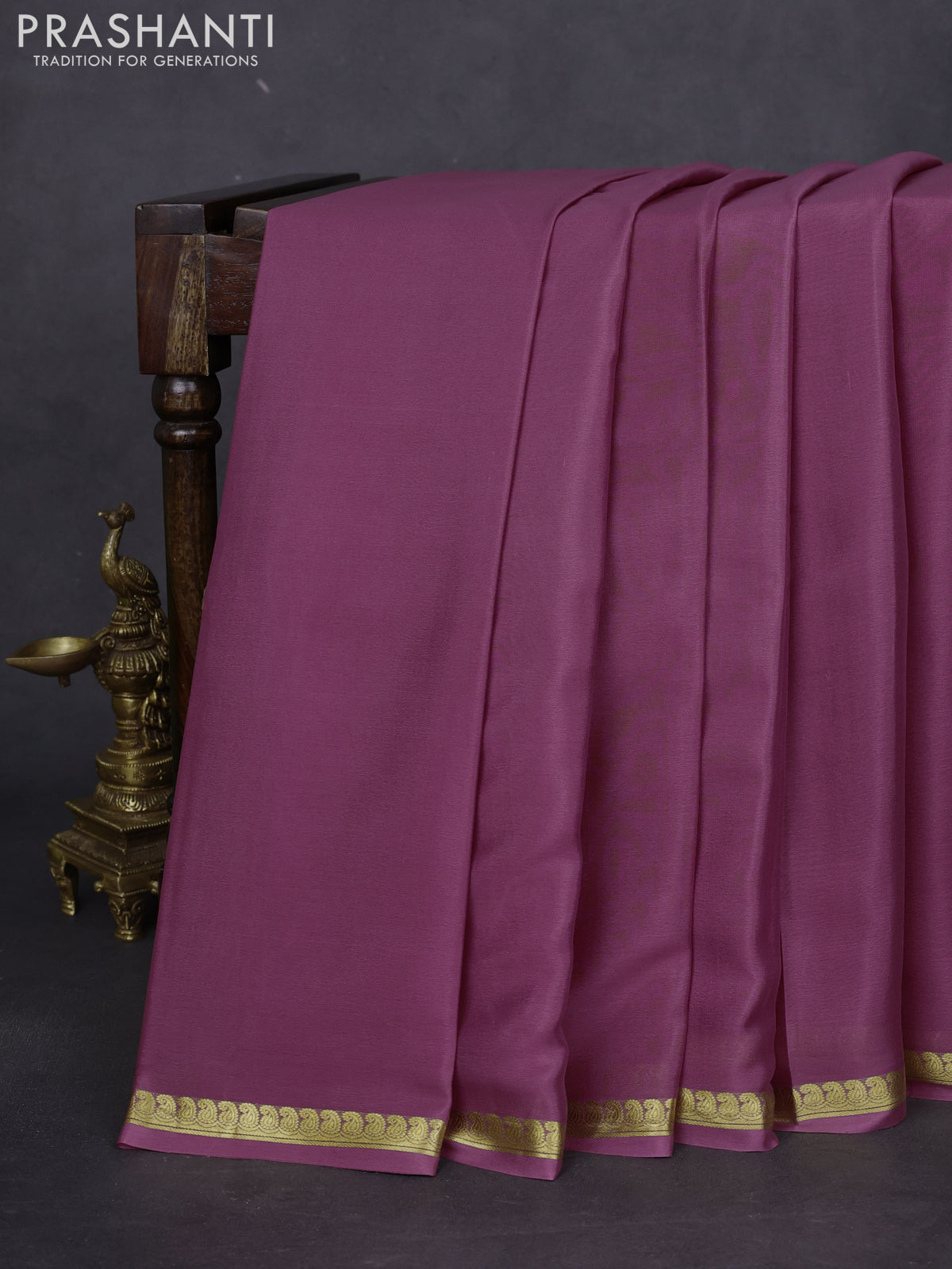 Pure mysore silk saree mauve pink with plain body and zari woven border
