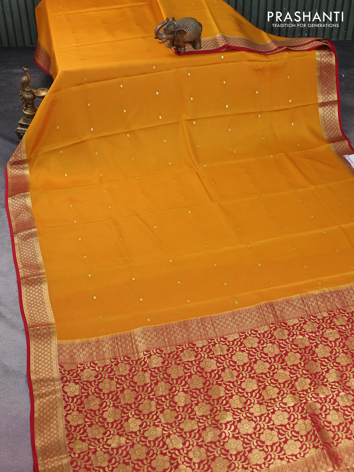 Pure mysore silk saree mustard yellow and red with zari woven buttas and zari woven border