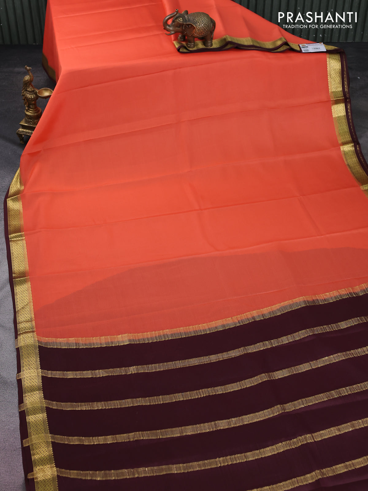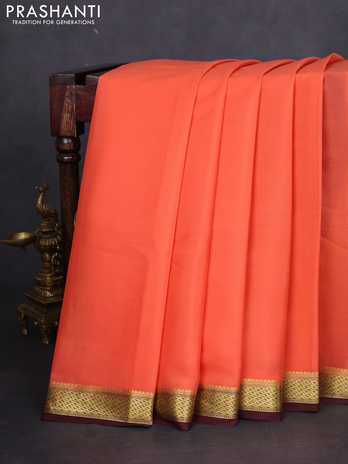 Pure mysore silk saree orange and brown with plain body and zari woven border