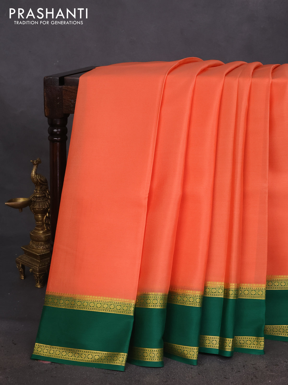 Pure mysore silk saree orange and green with plain body and rettapet zari woven border