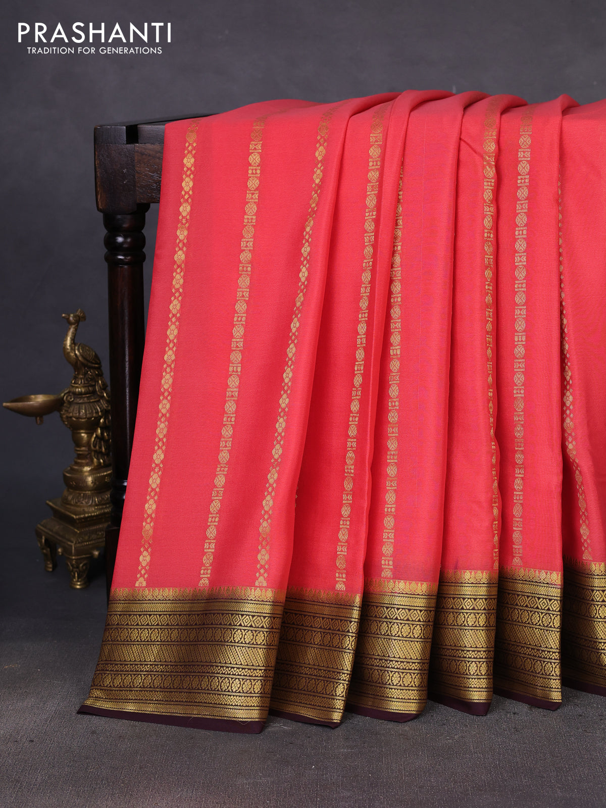 Pure Mysore silk sarees with a soft, fluid finish and classic appeal, ideal for festive wear and thoughtful gifting. Silk Mark certified and among Prashanti’s most loved and consistently best-selling collections.