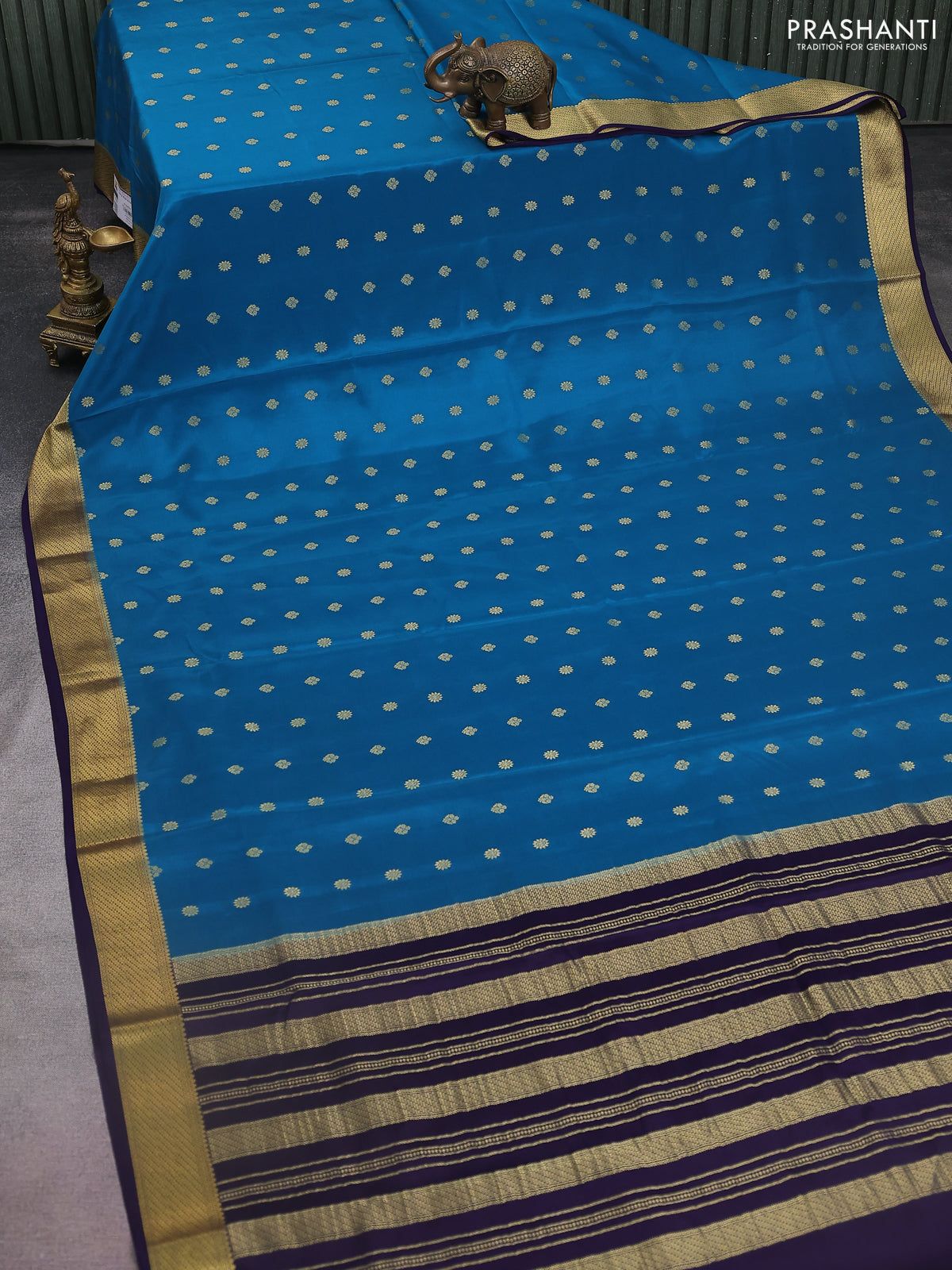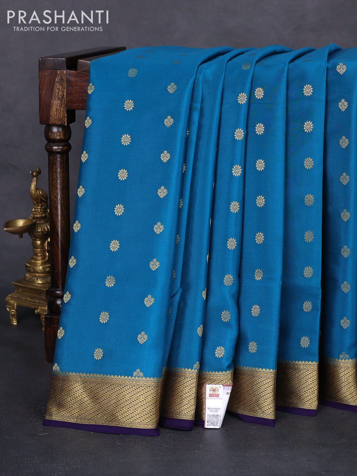 Pure mysore silk saree peacock blue and dark blue with allover zari woven buttas and zari woven border