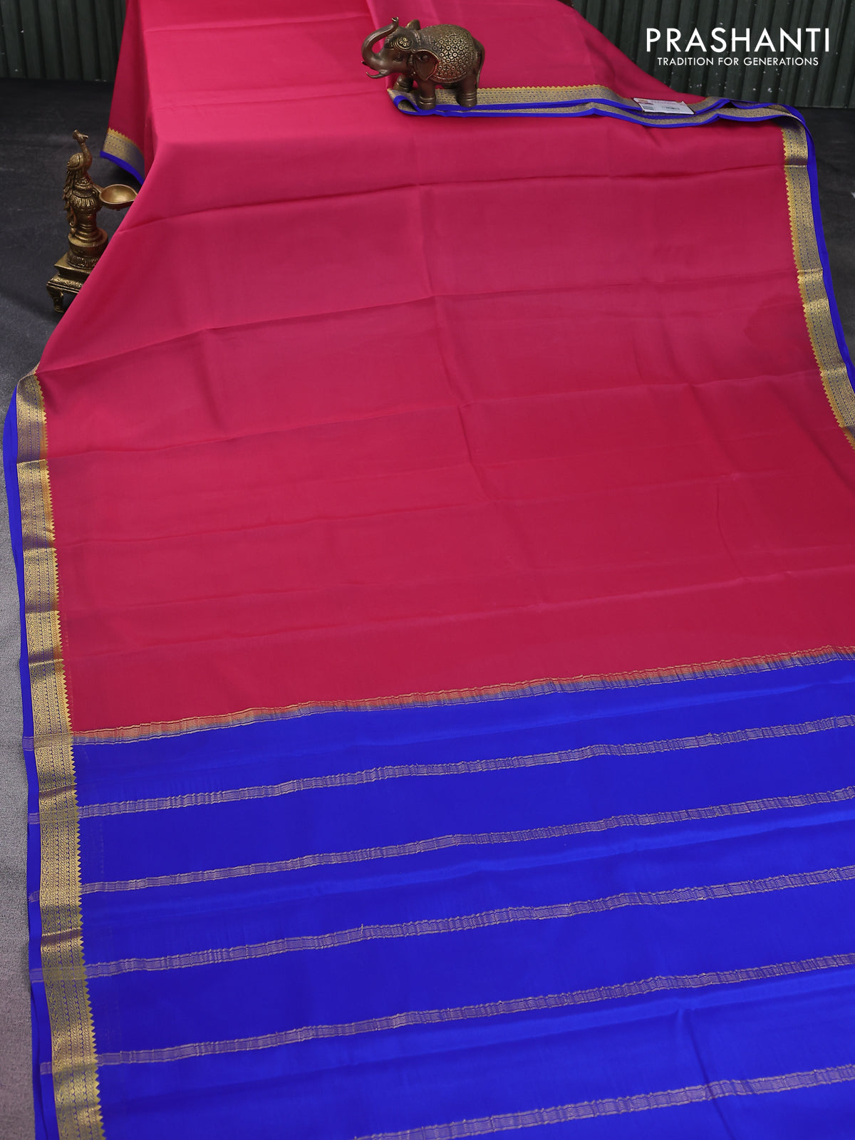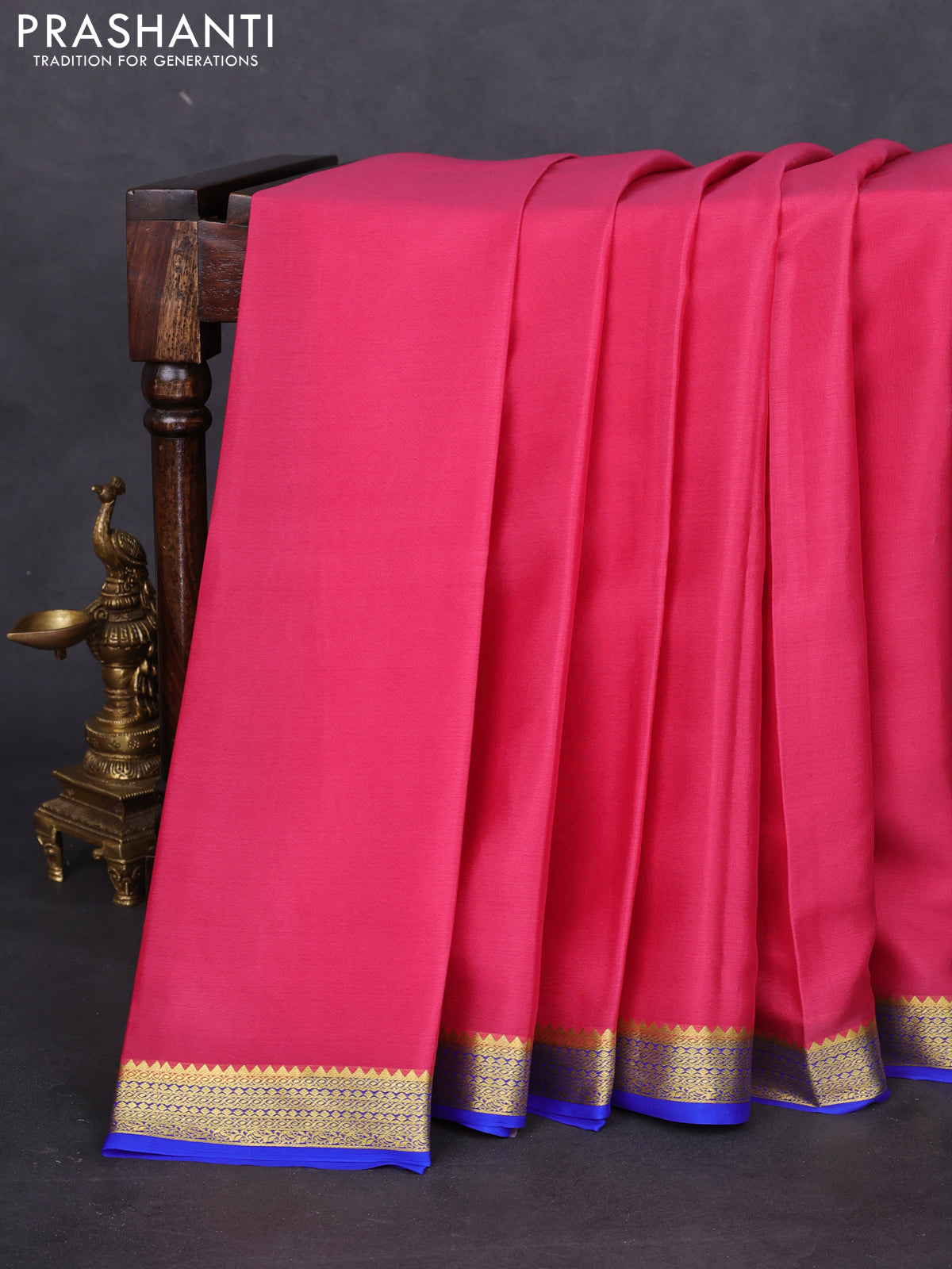 Pure mysore silk saree pink and blue with plain body and zari woven border