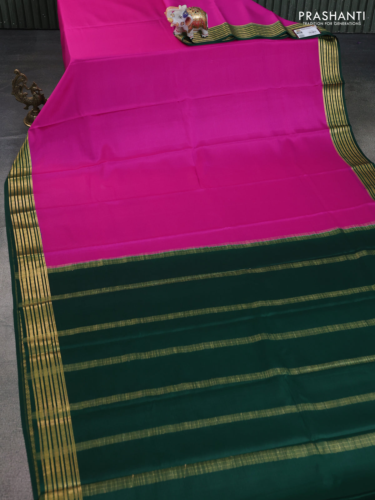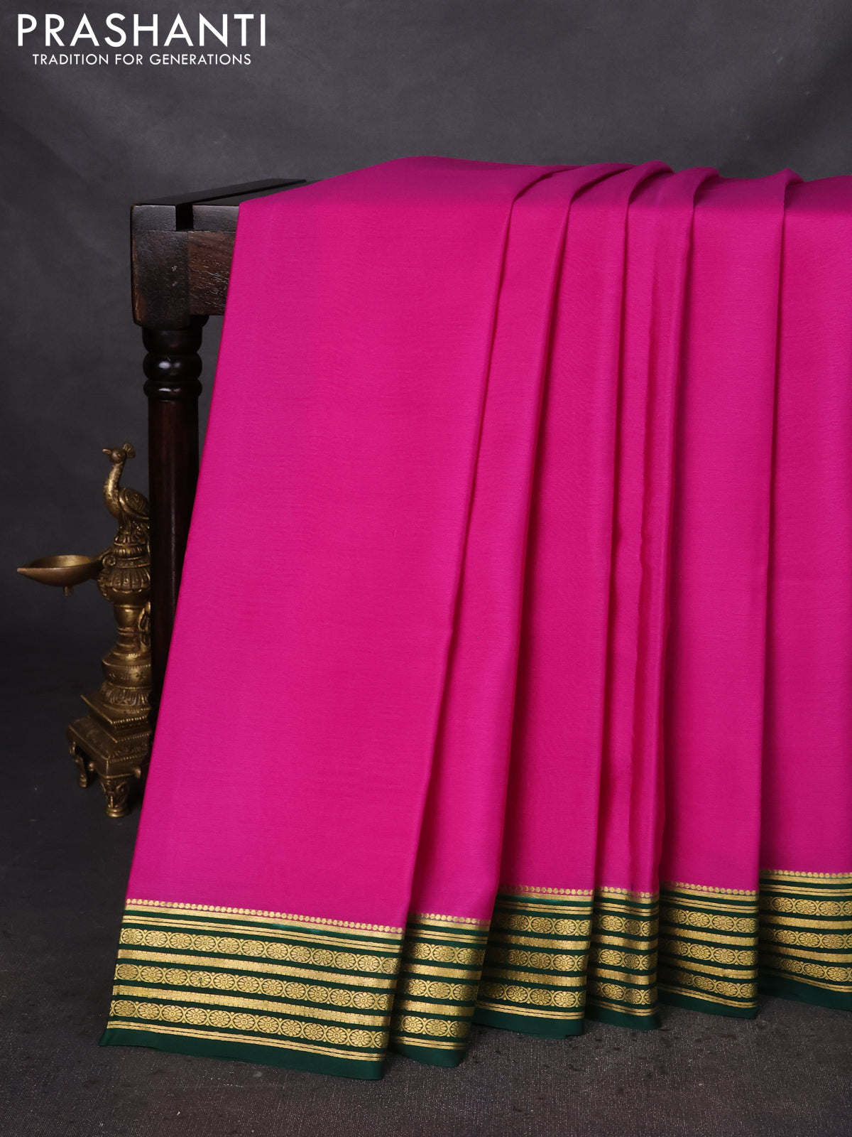 Pure mysore silk saree pink and green with plain body and zari woven border