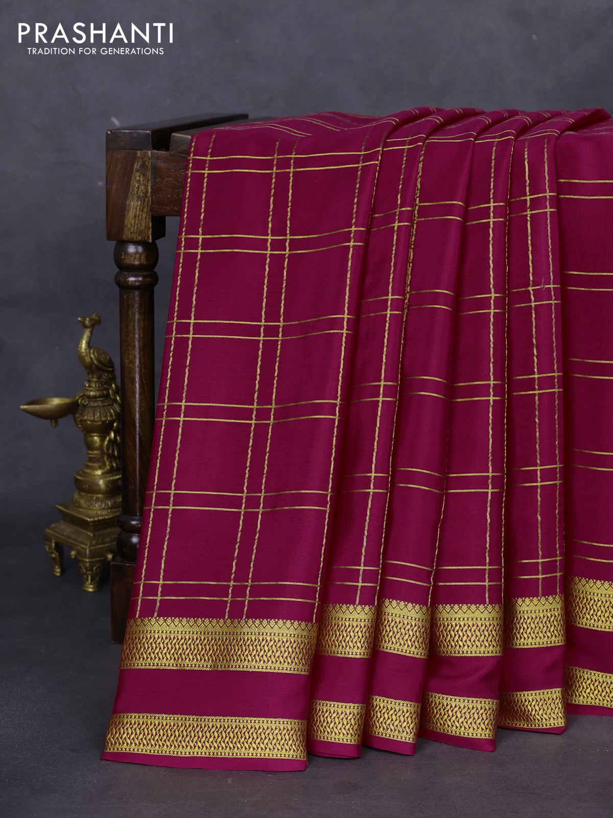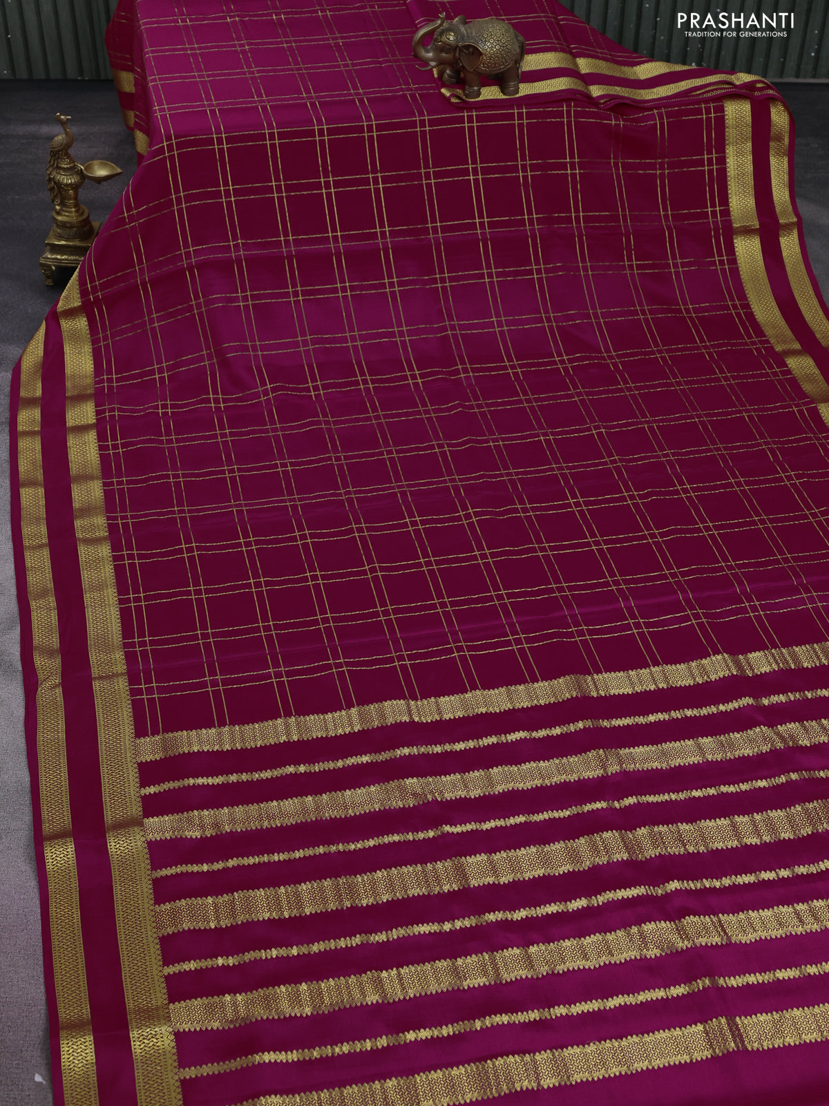 Pure mysore silk saree pink with allover zari checked pattern and rettapet zari woven border