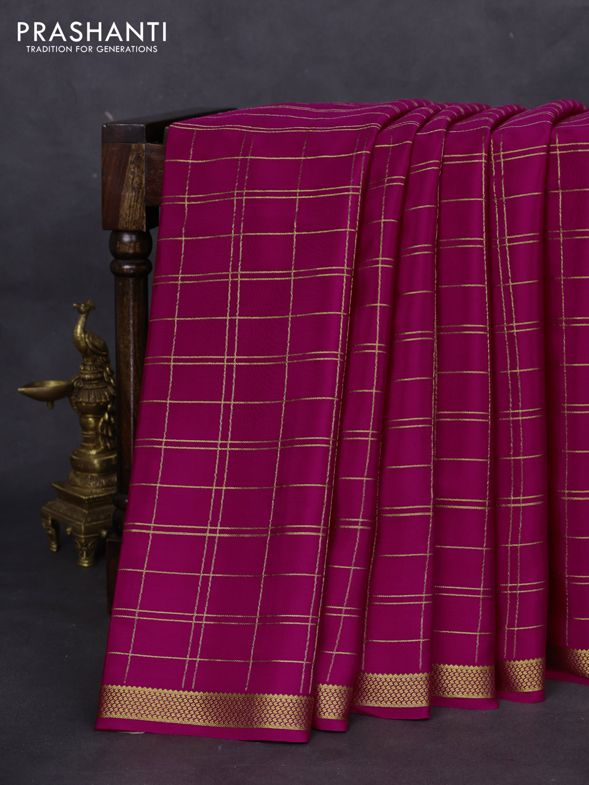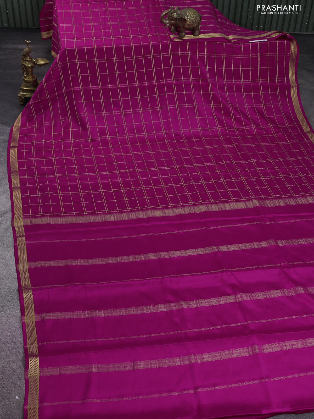 Pure mysore silk saree pink with allover zari checked pattern and zari woven border