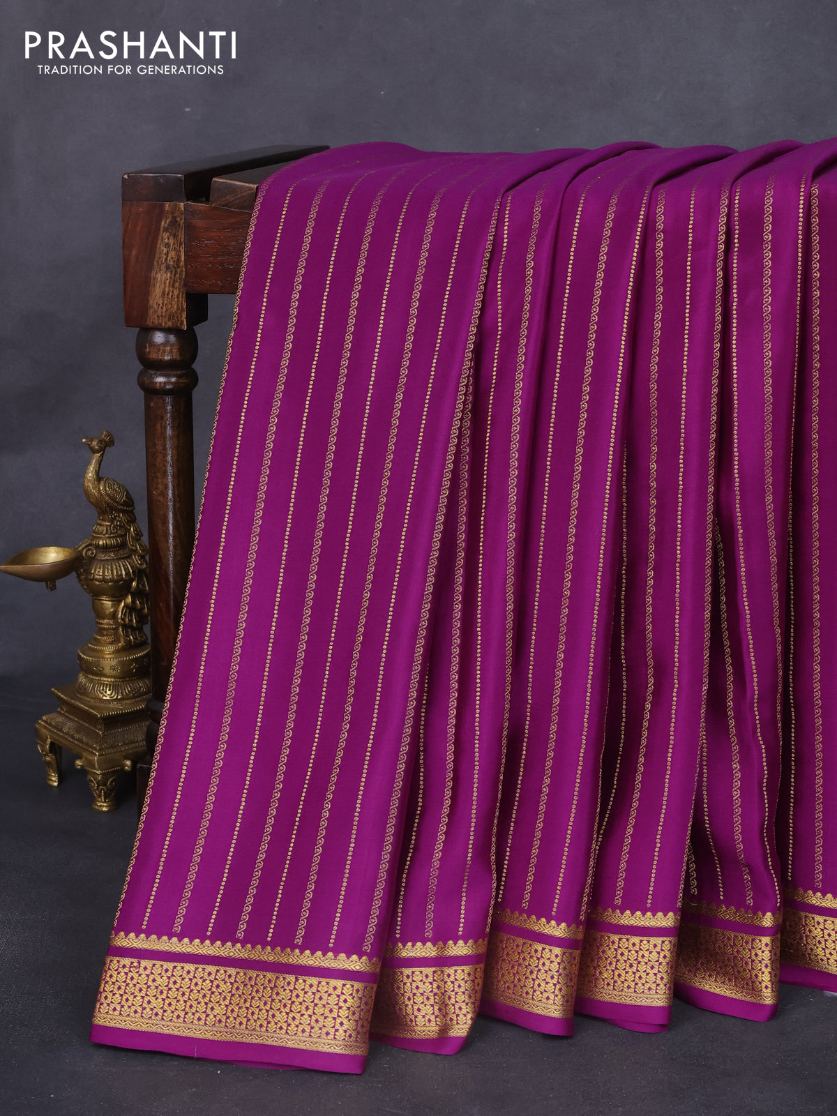 Pure mysore silk saree purple with allover zari weaves and zari woven border