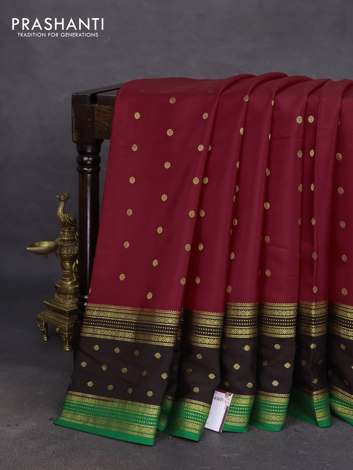 Pure mysore silk saree red and black green with zari woven buttas and long zari woven border