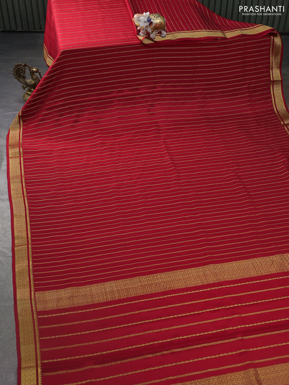 Pure mysore silk saree red with allover zari weaves and zari woven border