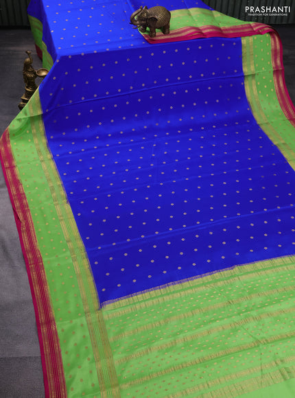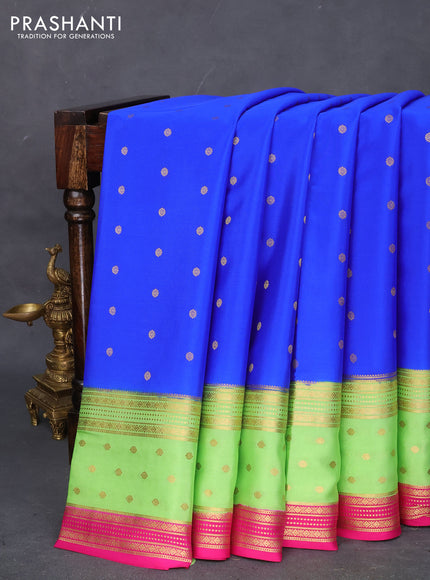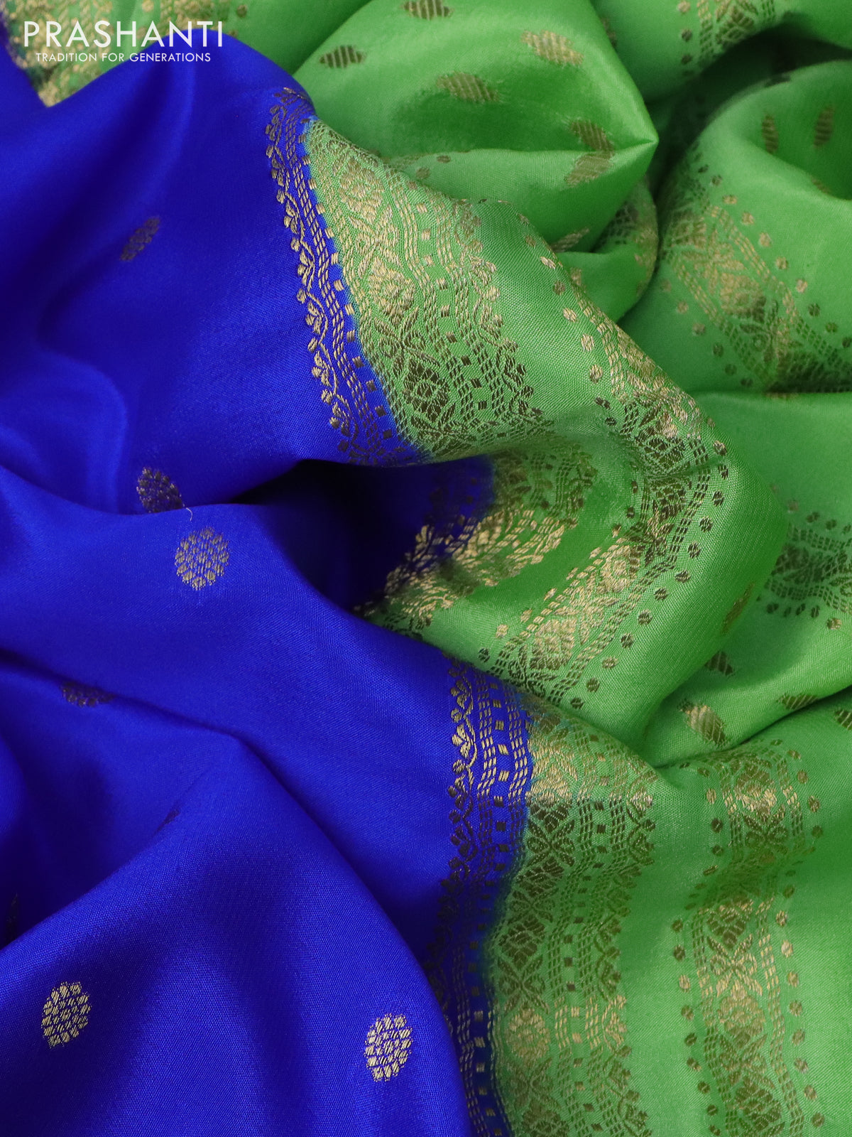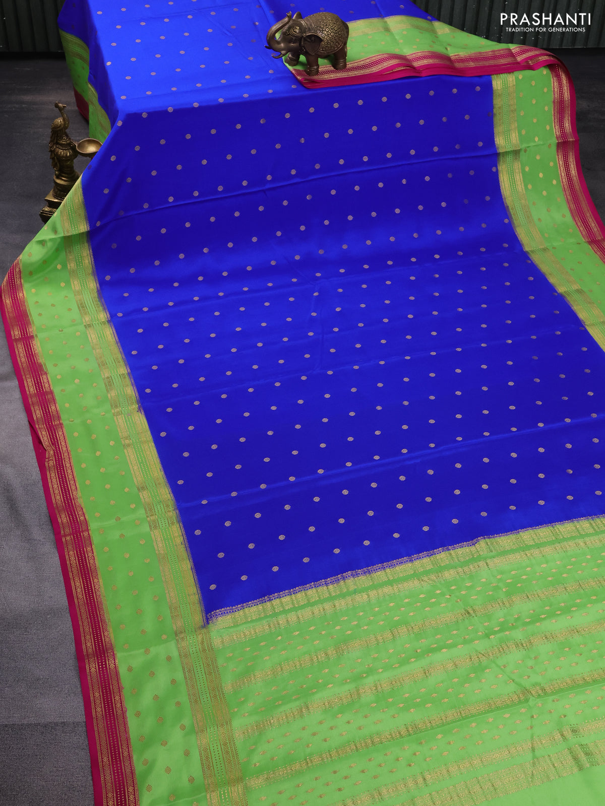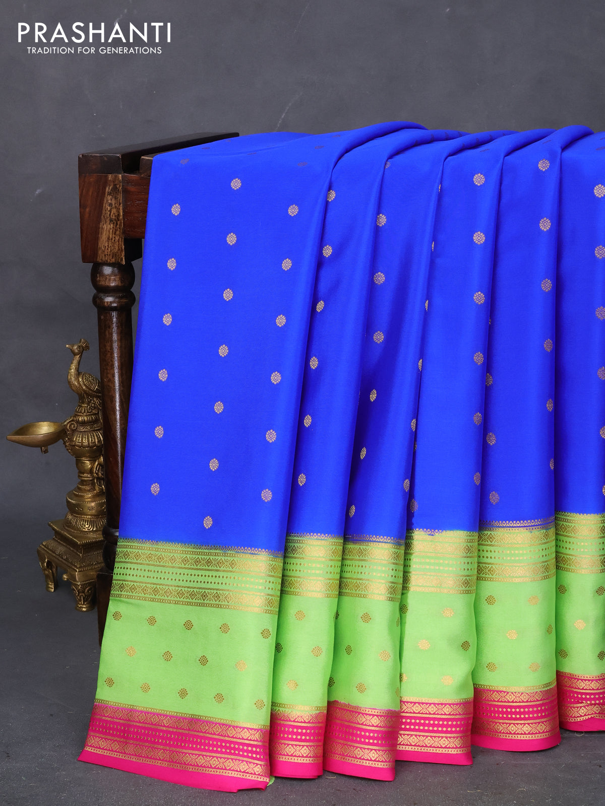 Pure mysore silk saree royal blue and light green pink with zari woven buttas and rich zari woven border