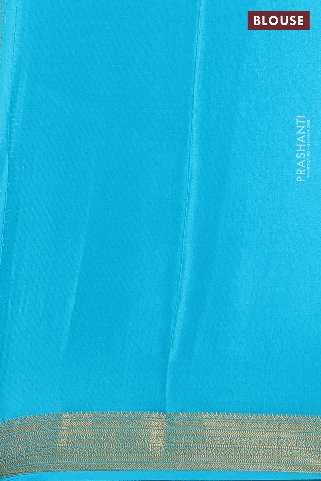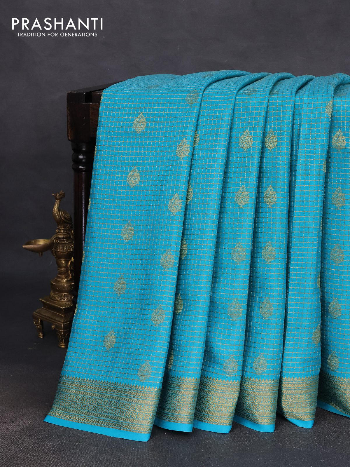 Pure mysore silk saree teal blue with allover small zari checks & buttas and zari woven border