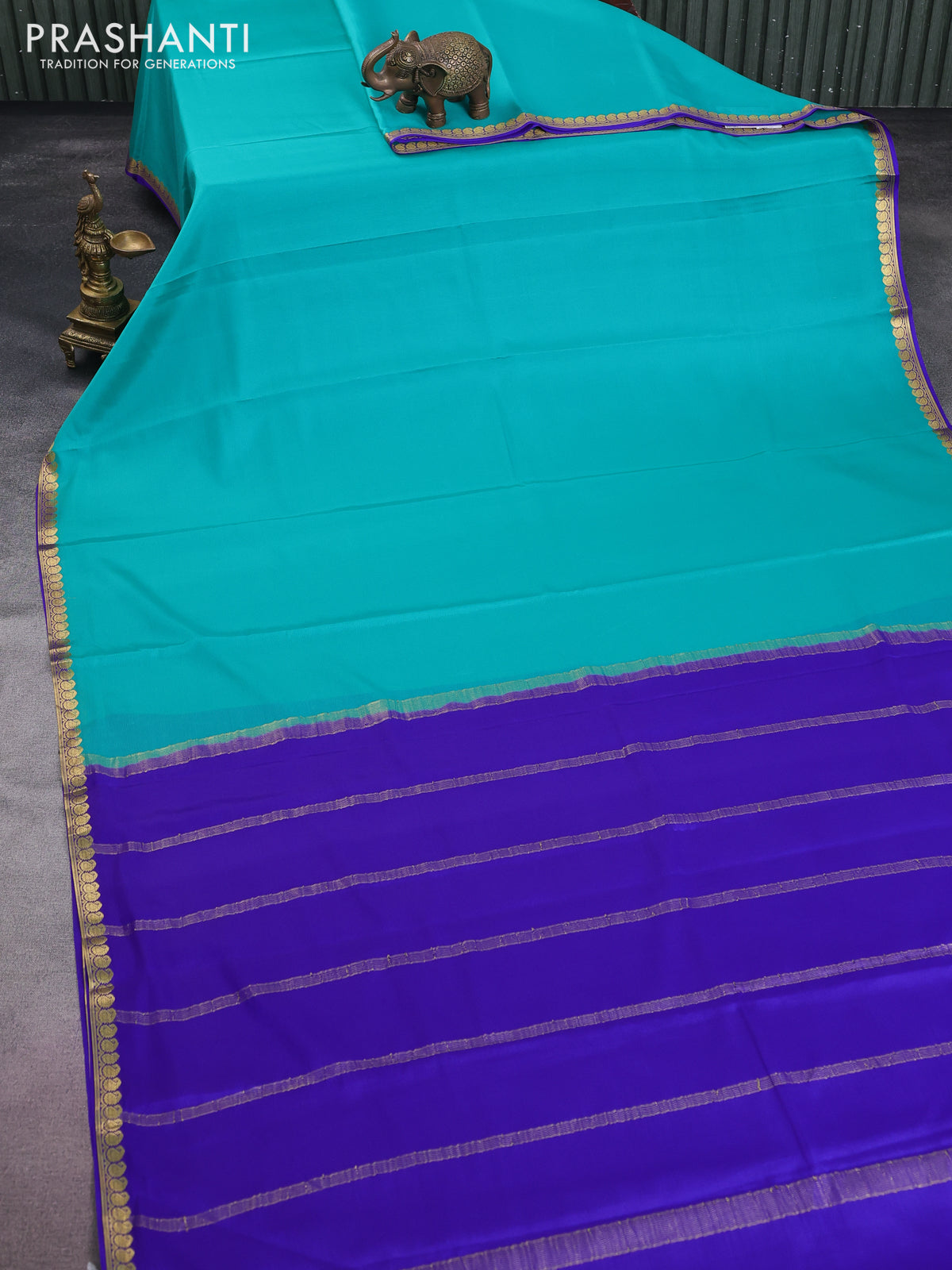 Pure mysore silk saree teal green and blue with plain body and zari woven border