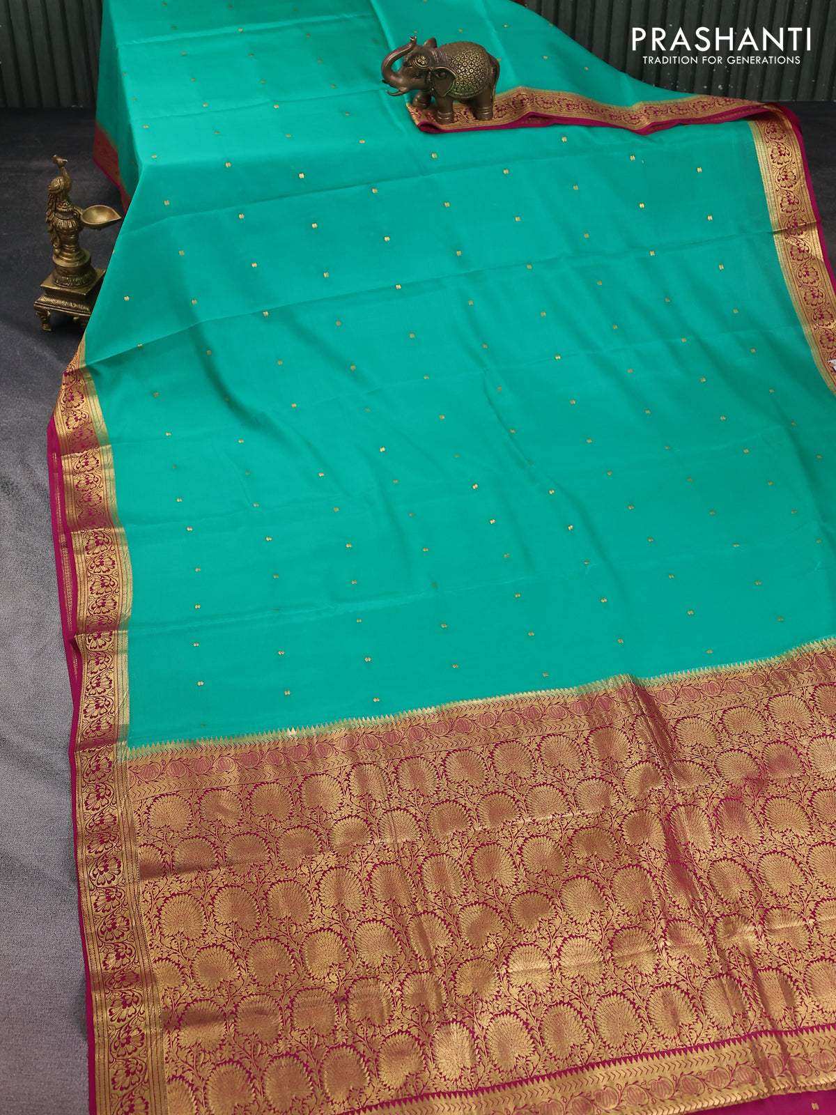 Pure mysore silk saree teal green and pink with zari woven buttas and zari woven border