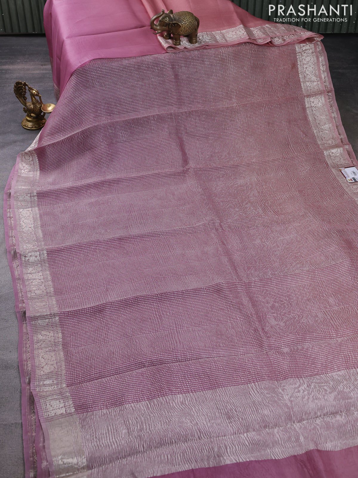 Pure organza partly silk saree pastel pink and pastel peach with allover silver zari weaves and silver zari woven border