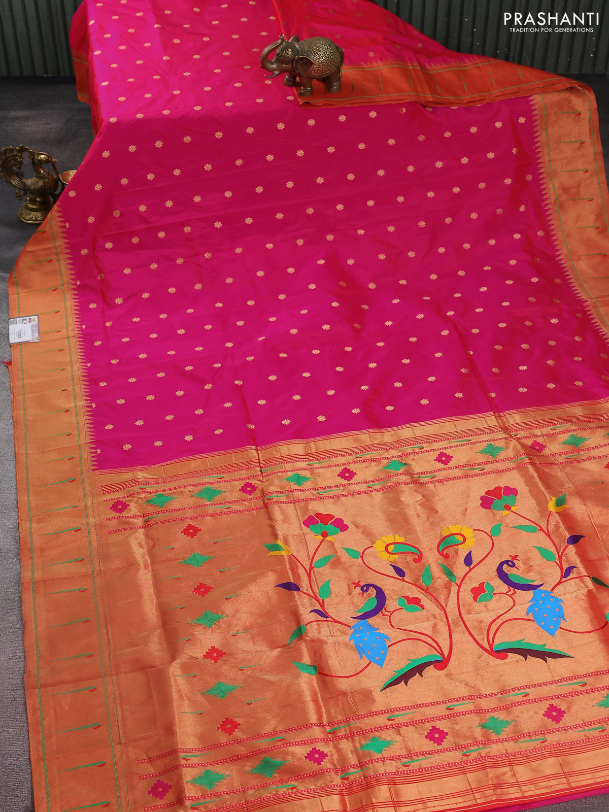 Pure paithani silk saree candy pink and red with zari woven buttas and muniya butta border