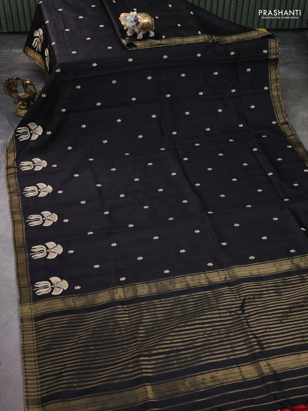 Pure raw silk saree black and red with embroidery buttas and embroidery butta zari border