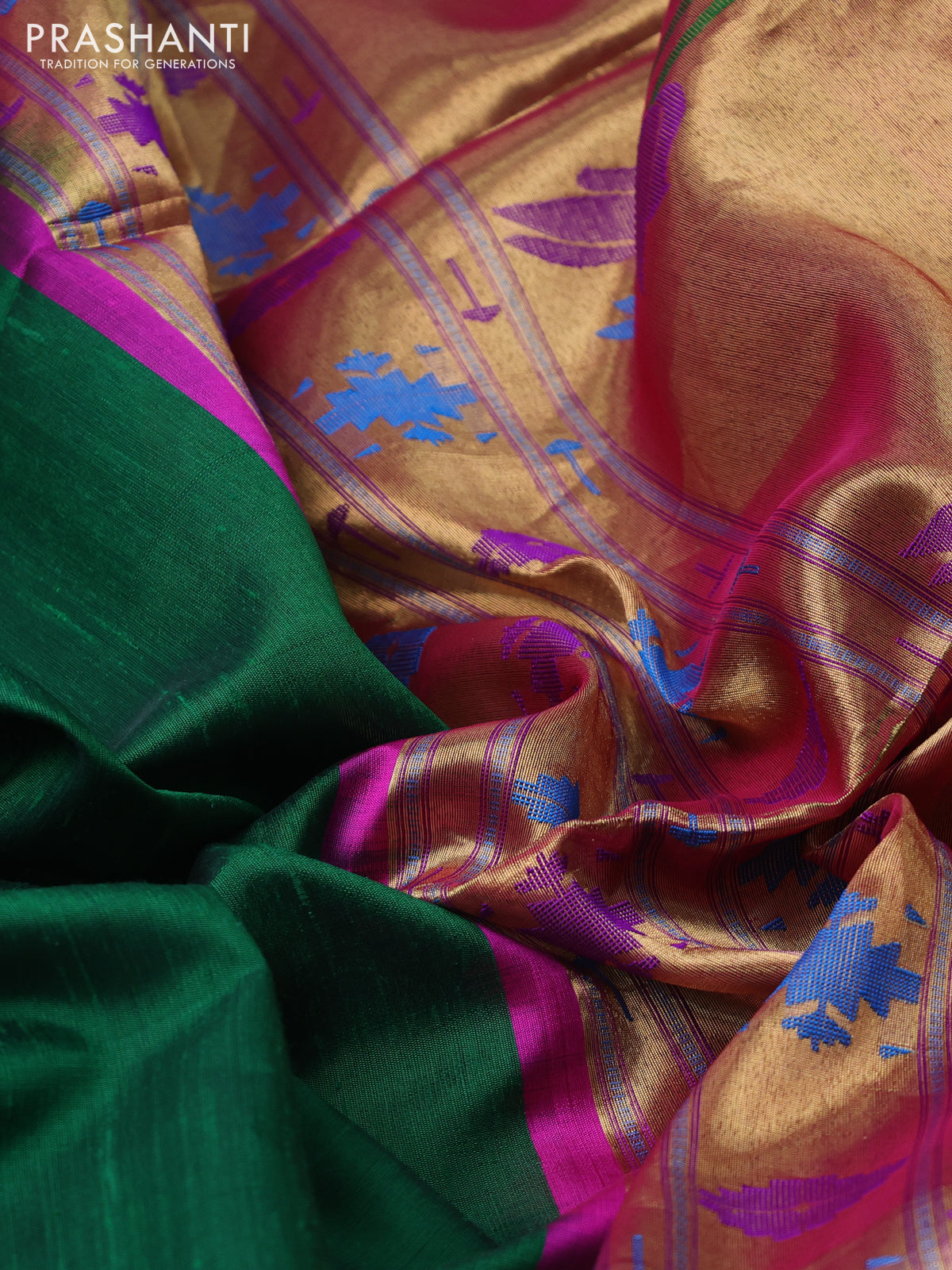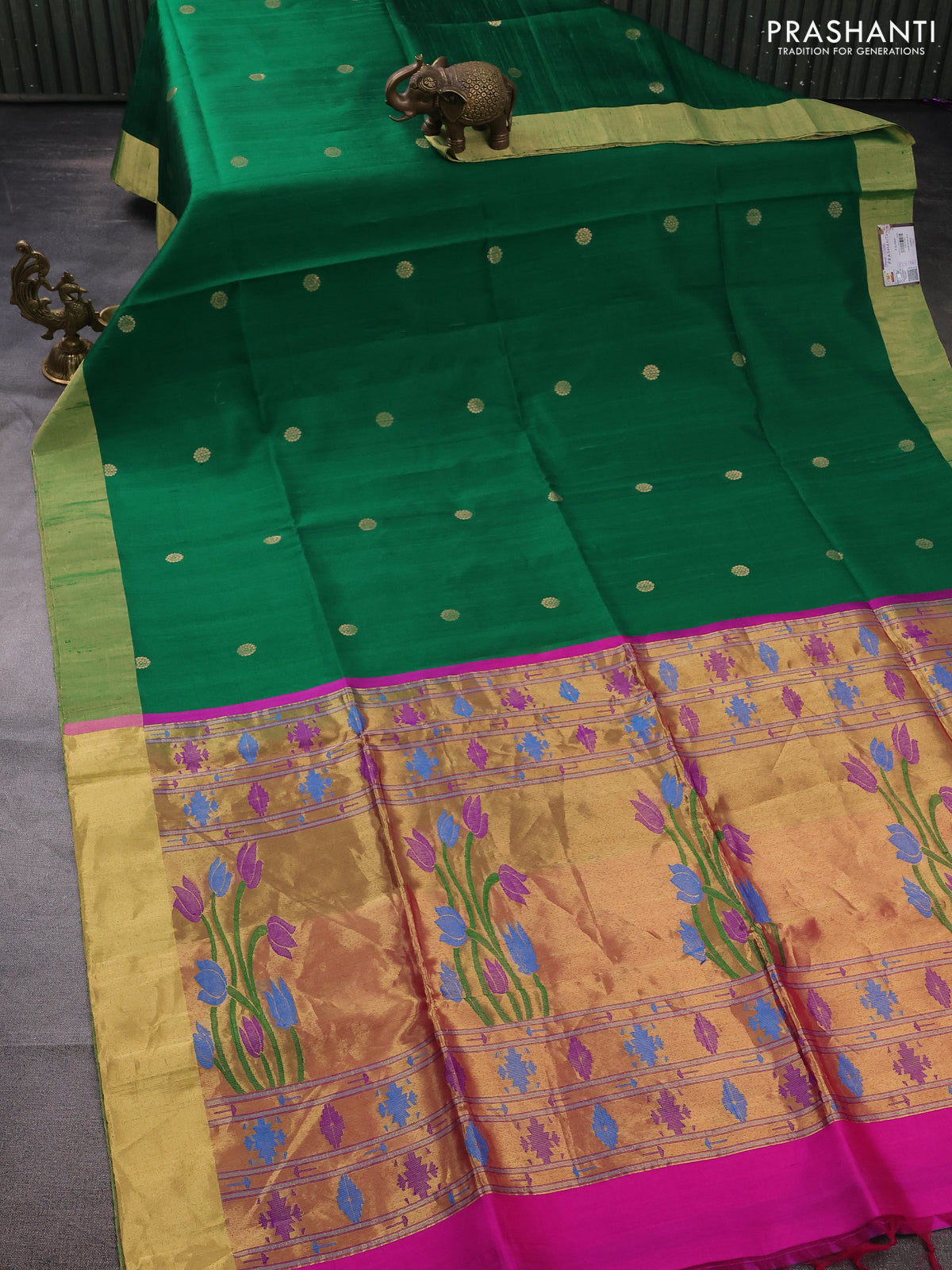 Pure raw silk saree green and pink with zari woven buttas and paithani zari woven pallu