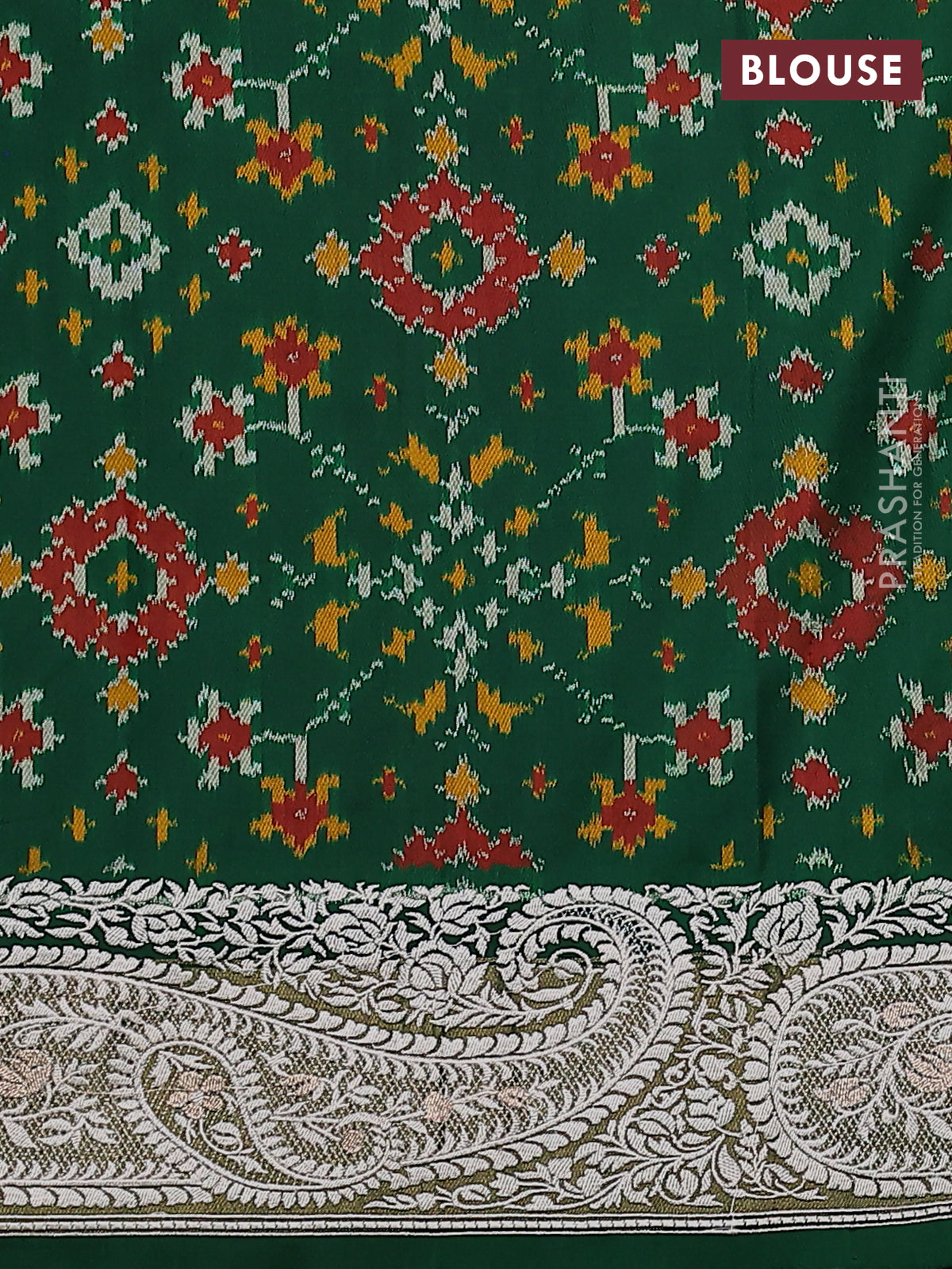 Pure raw silk saree green with embroidery buttas and paisley embroidery border