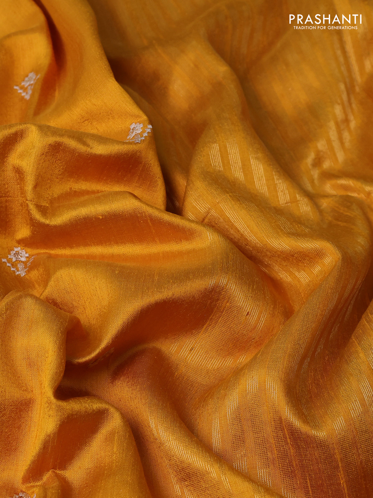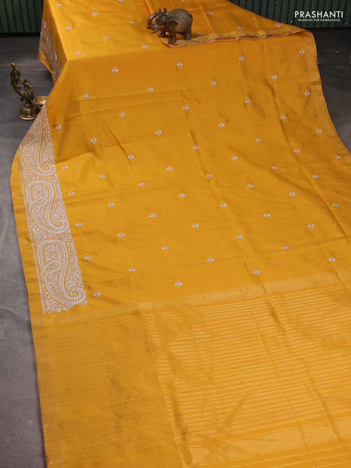 Pure raw silk saree mustard yellow with embroidery buttas and paisley embroidery border