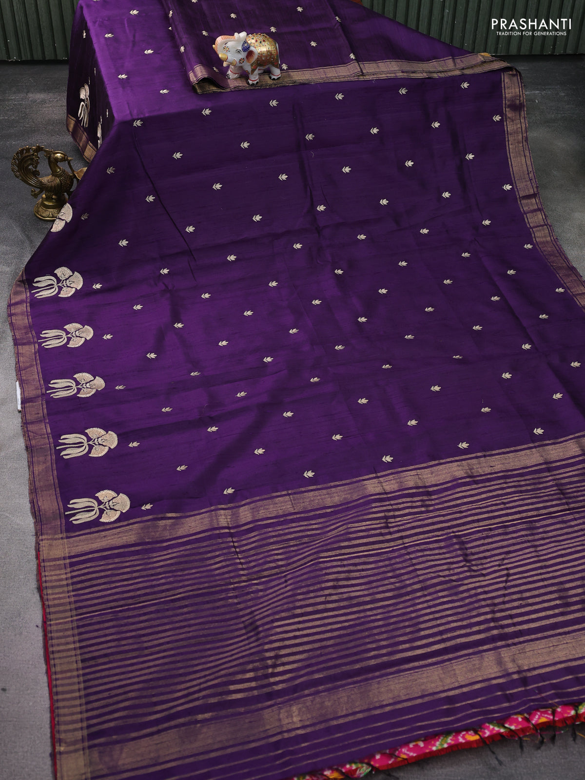 Pure raw silk saree violet and pink with embroidery buttas and embroidery butta zari border
