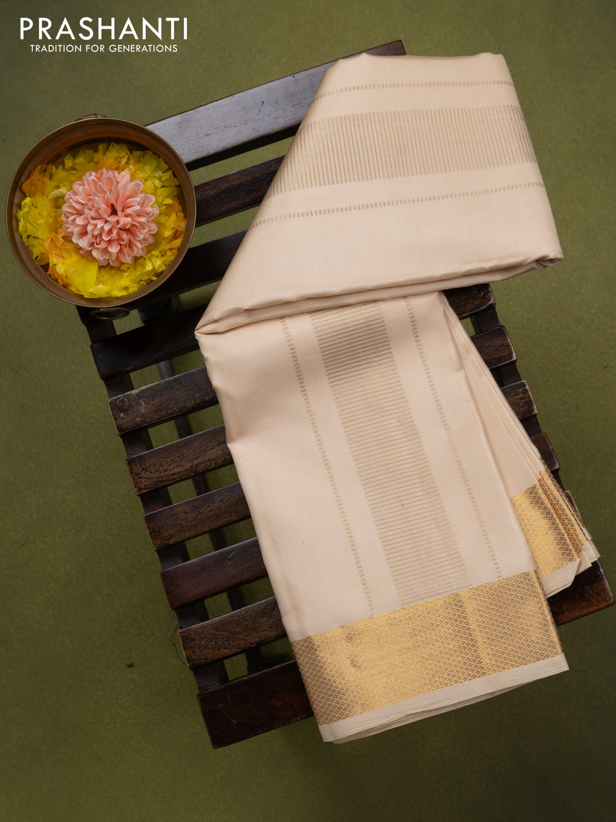 9x5 Pure silk dhoti and matching shirt bit cream with zari woven border