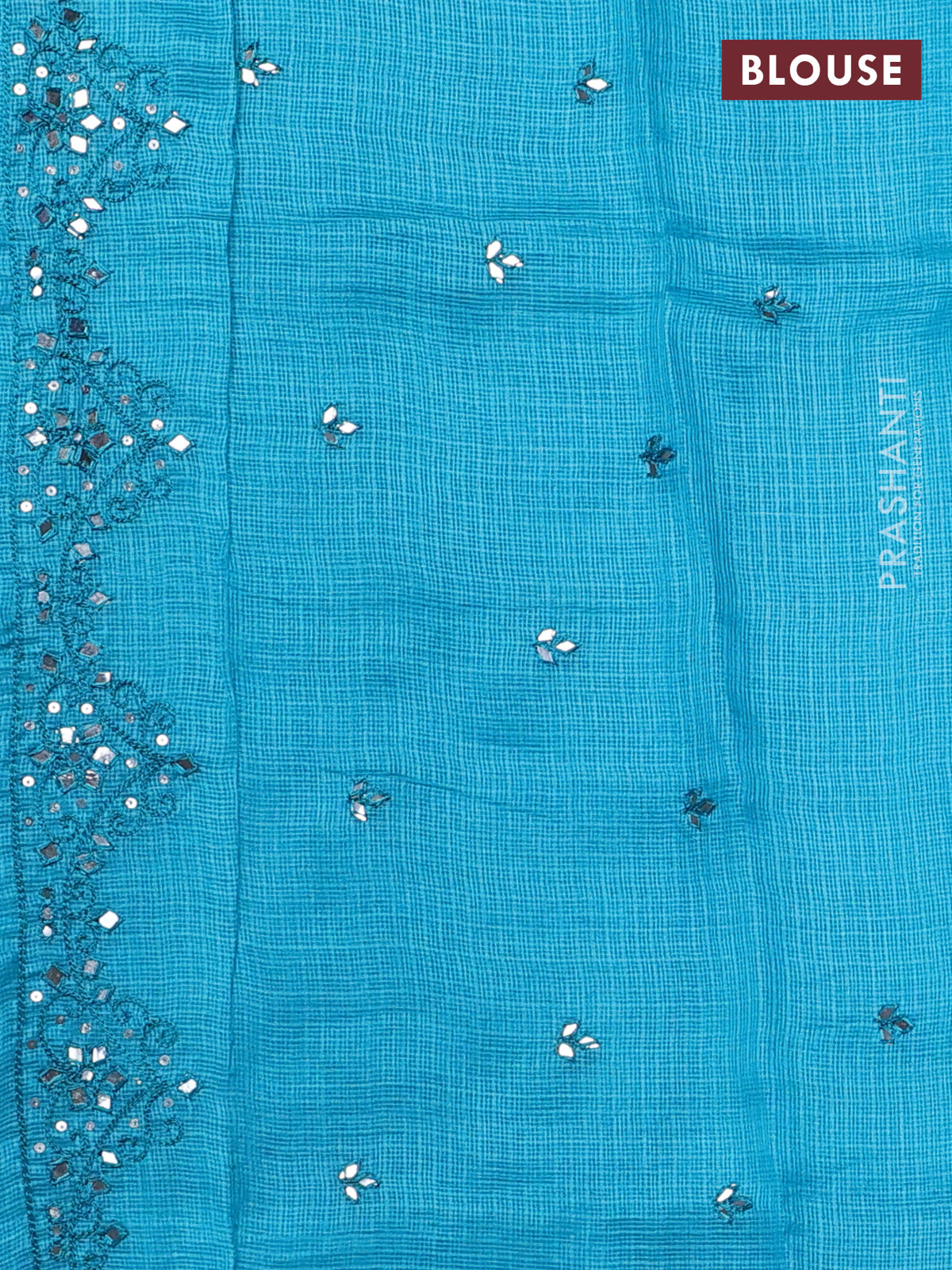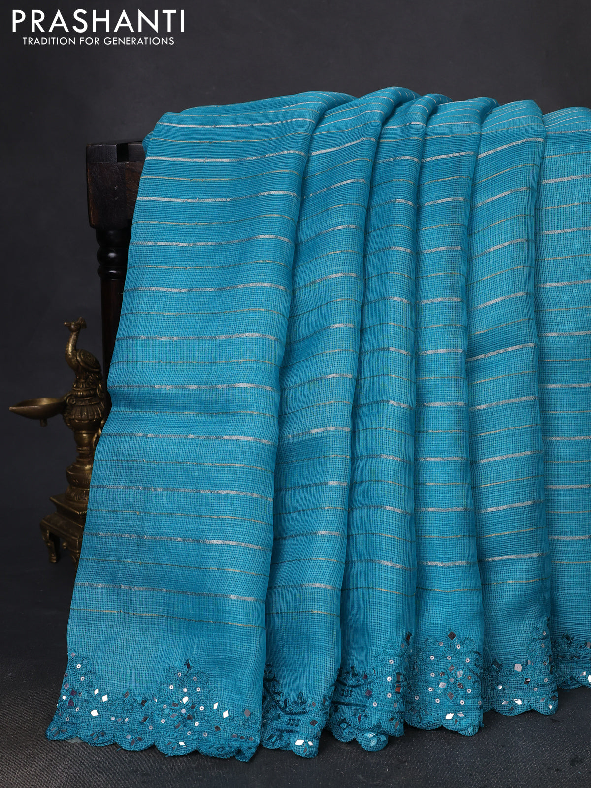 Pure silk kota saree blue with allover zari weaves and mirror embriodery border