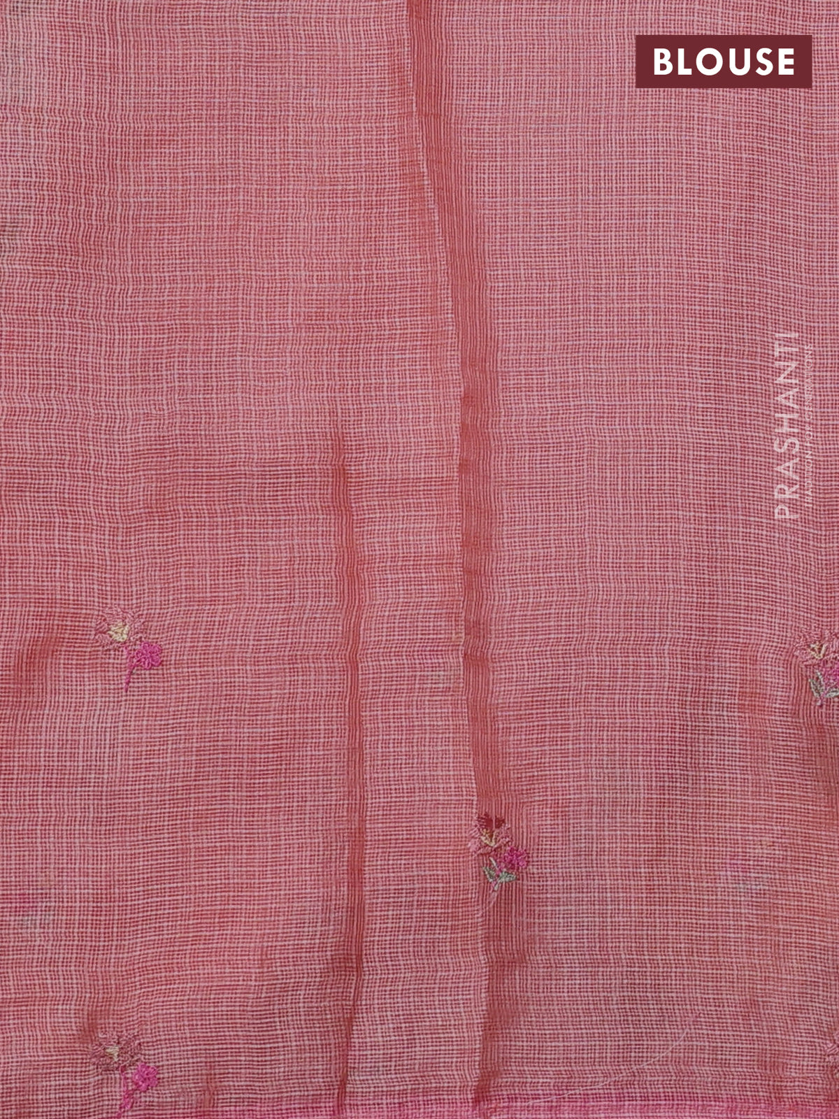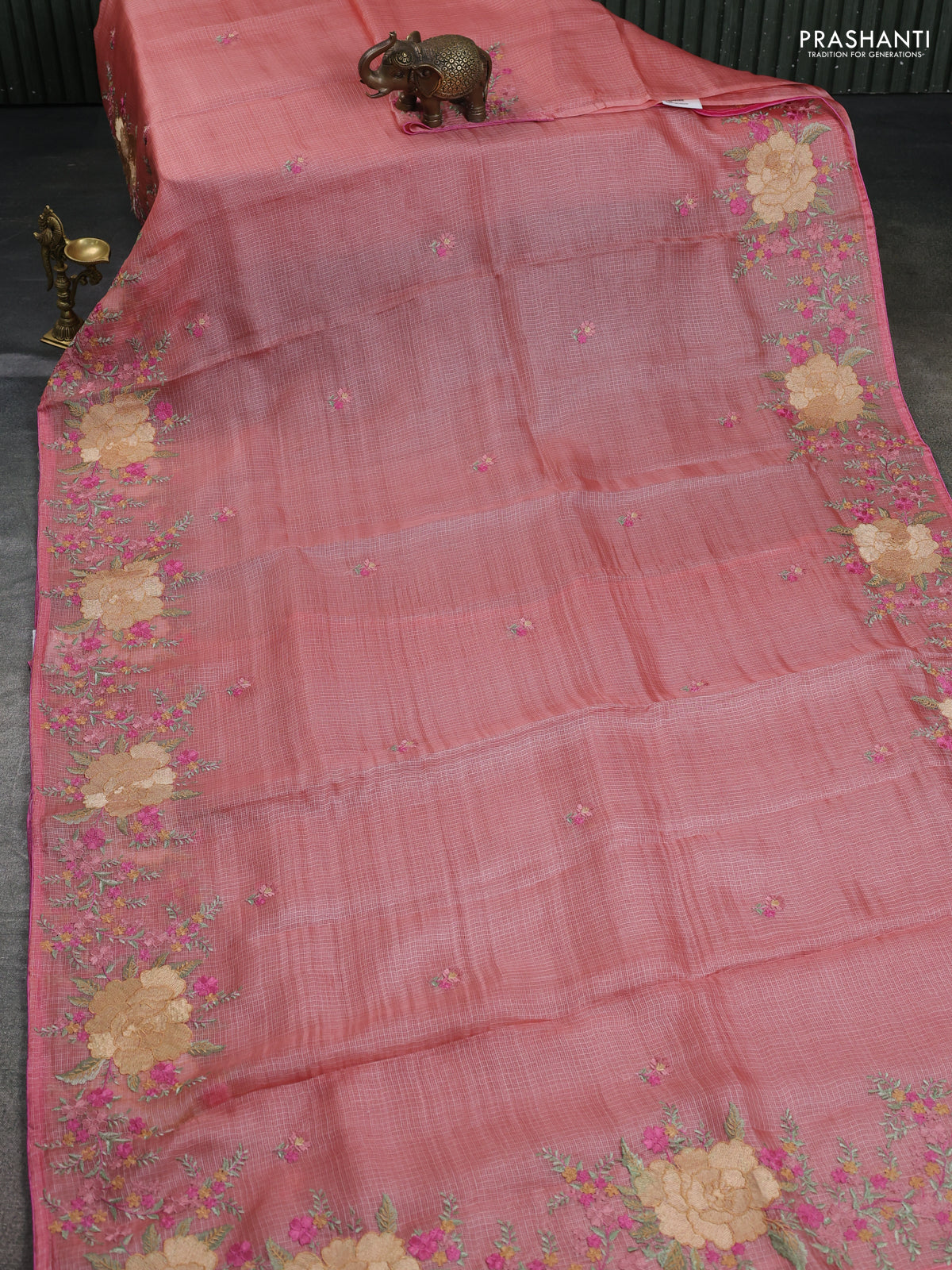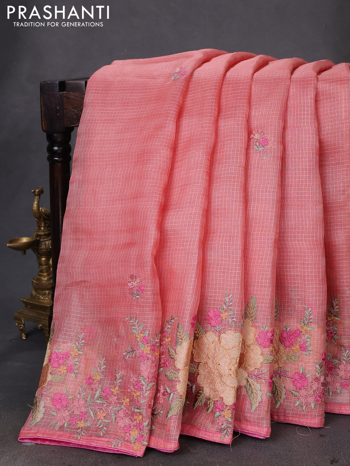 Pure silk kota saree dark peach and light pink with embroidery buttas and floral design embroidery border