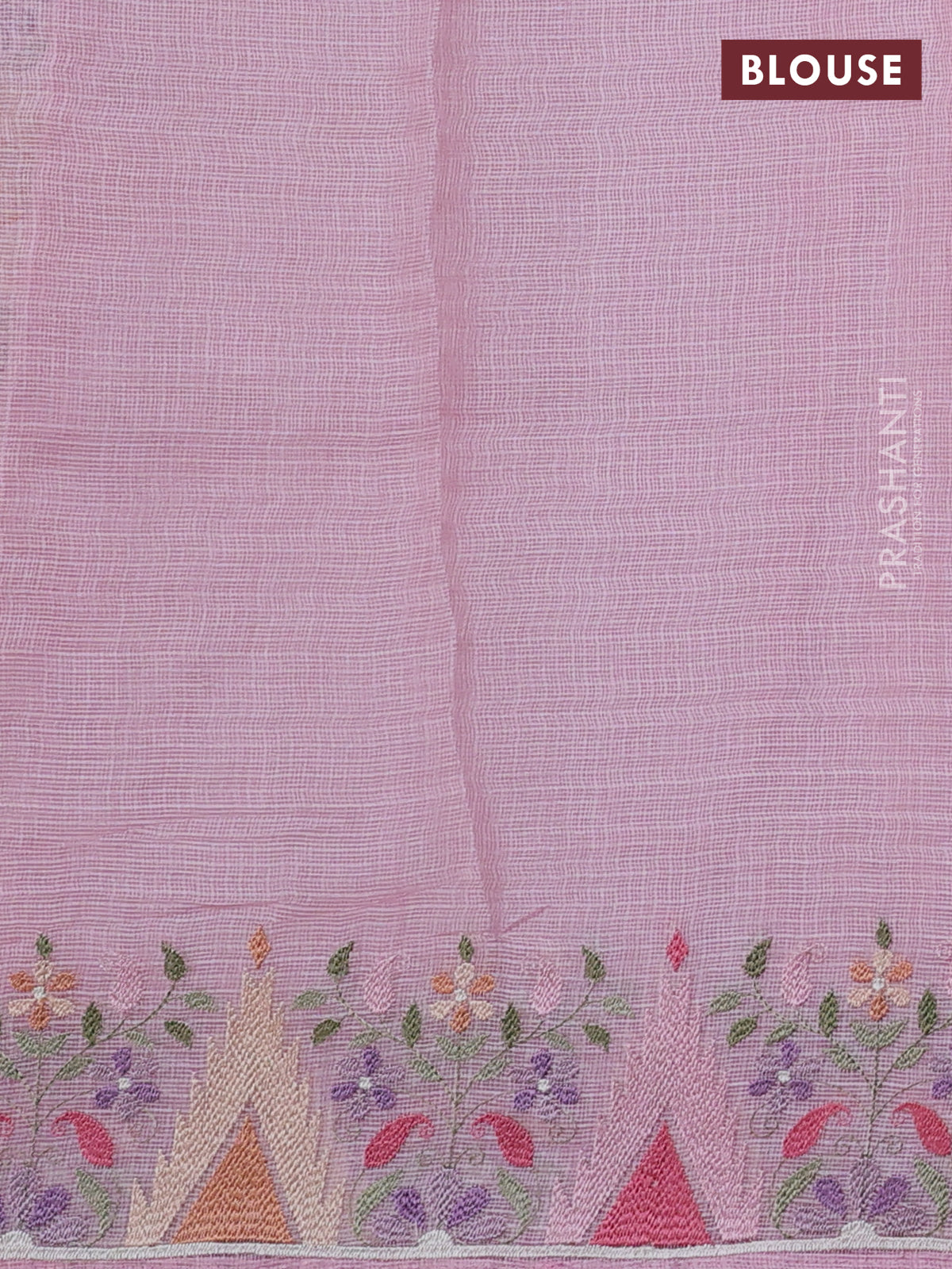 Pure silk kota saree light pink with embroidery buttas and embroidery border