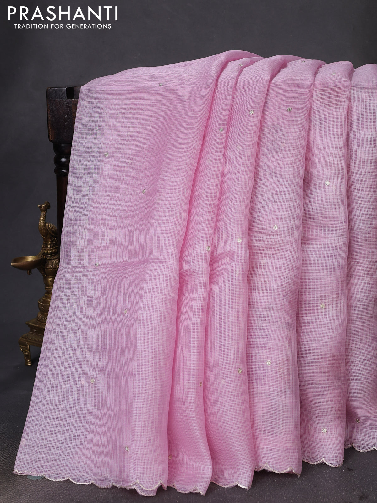 Pure silk kota saree mild lavender with sequin buttas and scallop design border Kalamkari prints pita work blouse