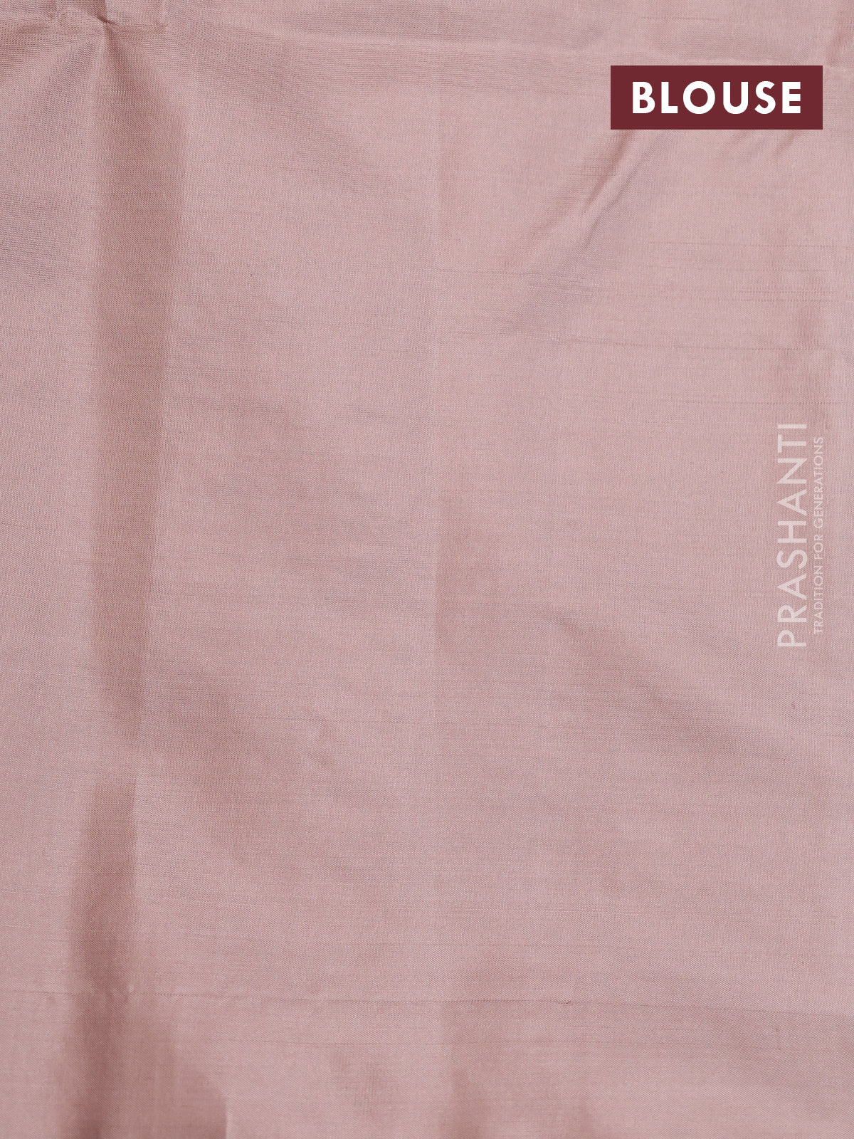 Pure soft silk saree blue and pastel brown with silver zari woven buttas in borderless style