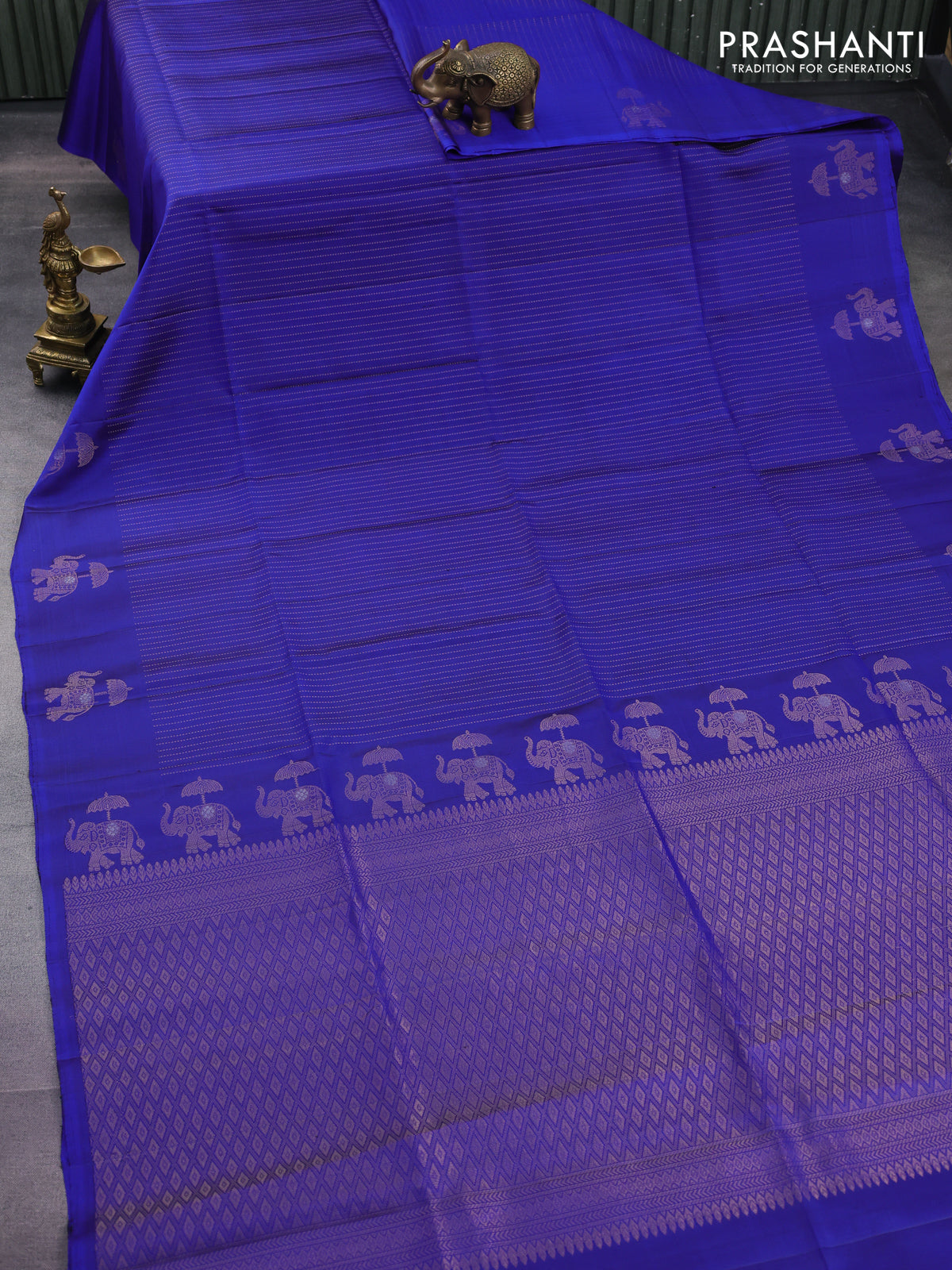 Pure soft silk saree blue with allover zari weaves and zari woven butta border