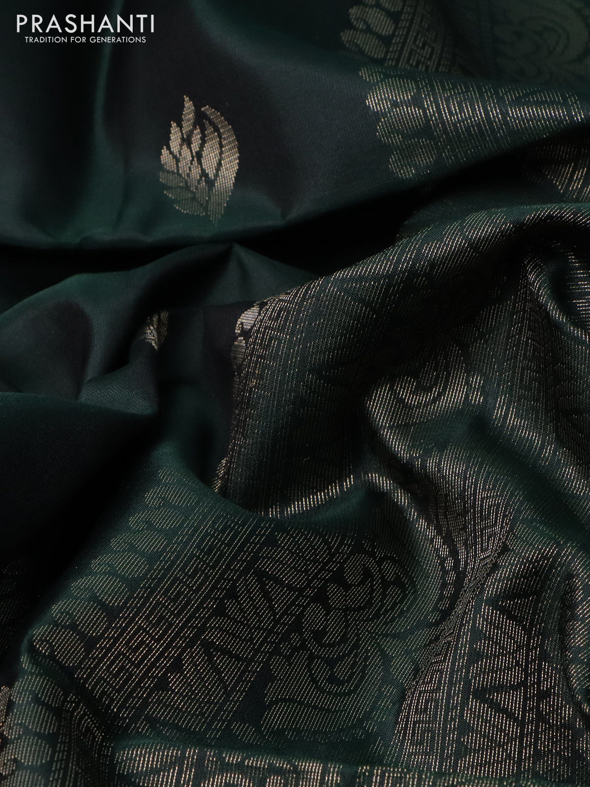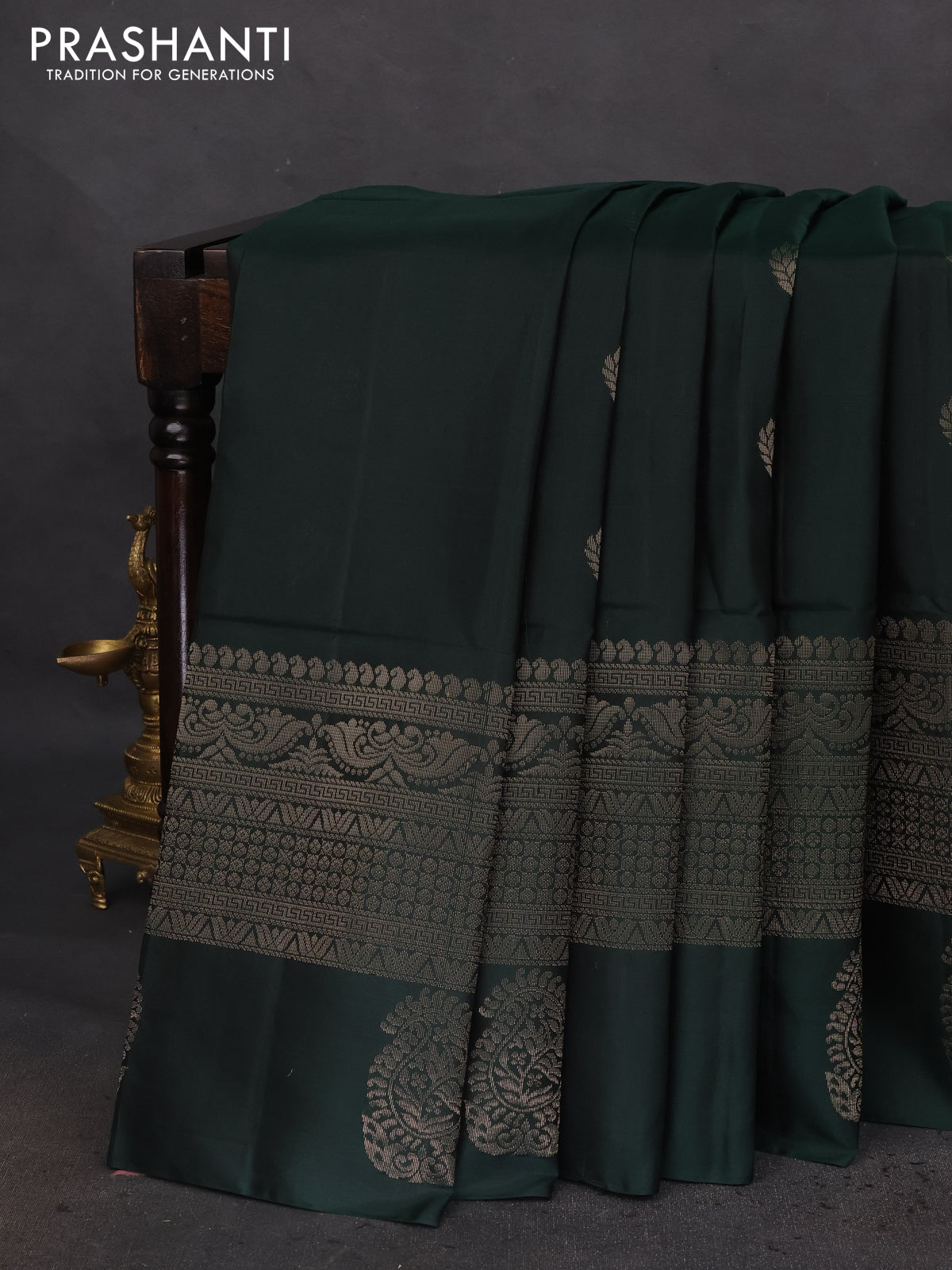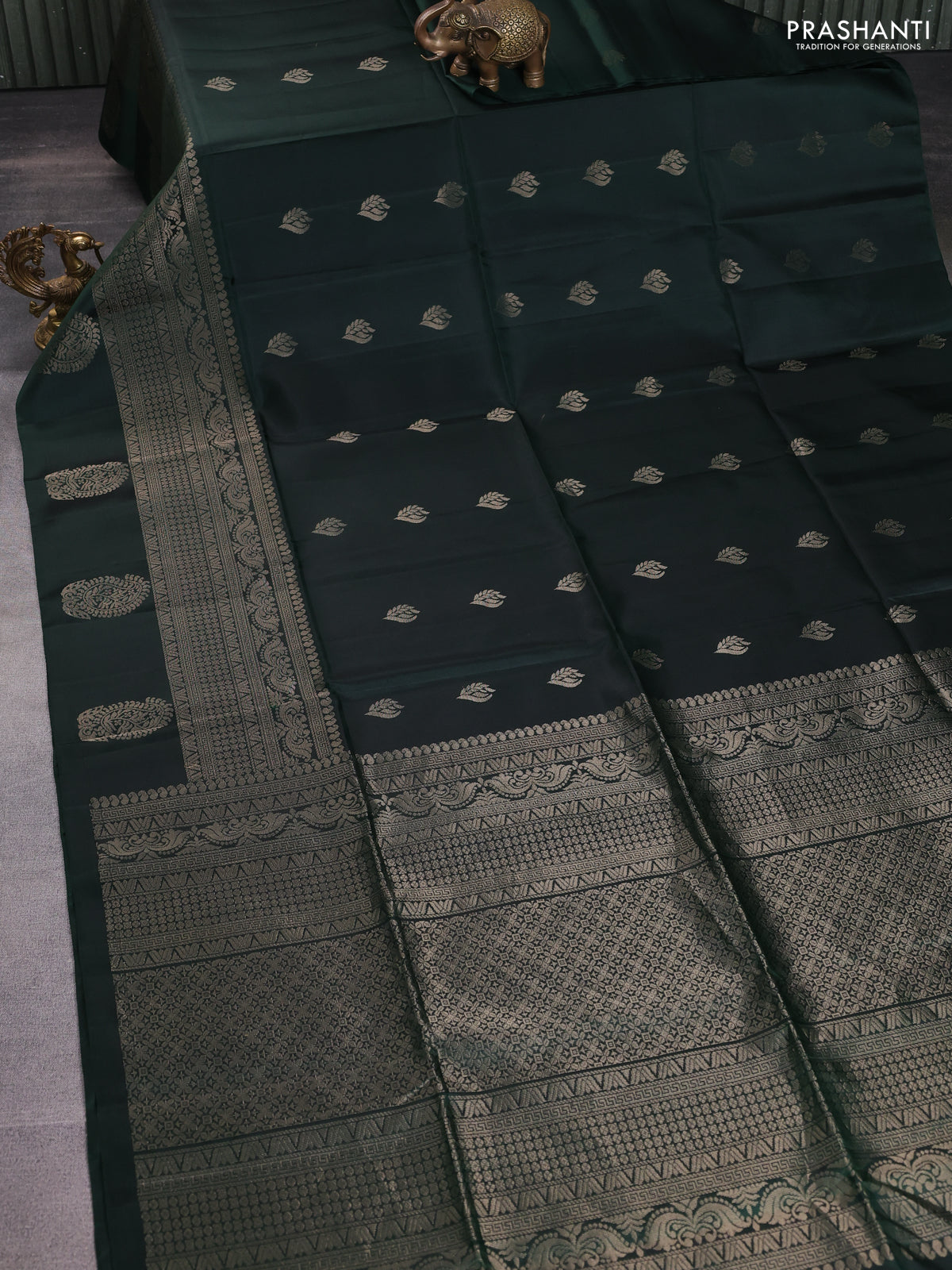 Pure soft silk saree bottle green with zari woven buttas and zari woven border